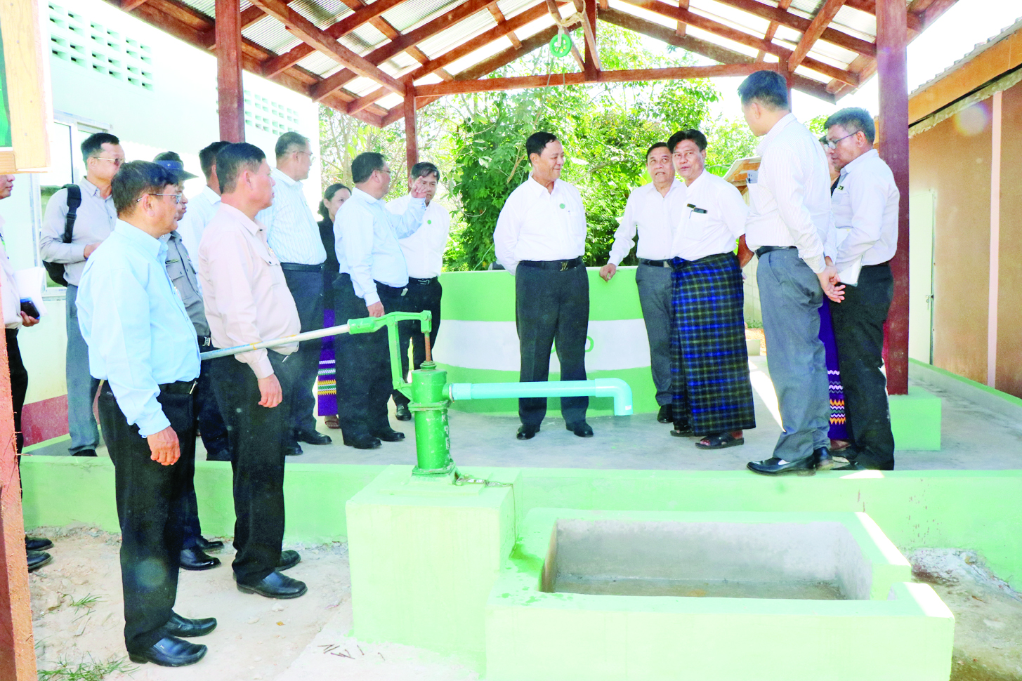 ယင်းနောက် စီမံကိန်းရန်ပုံငွေများဖြင့် အကောင်အထည်ဖော်ဆောင်ရွက်ခဲ့သည့် ကျေးရွာဘက်စုံ သုံးခန်းမ၊ ကျေးရွာစာကြည့်တိုက်၊ ကျေးရွာရေရရှိရေးအတွက် လက်တူးတွင်းကျယ်နှင့် အိမ်တိုင်ရာရောက် ရေပိုက်လိုင်းသွယ်တန်းခြင်း လုပ်ငန်းများကိုလည်းကောင်း၊ ထိုက်အောင်လယ်ယာနှင့် အထွေထွေစီးပွားရေးလုပ်ငန်း သမဝါယမအသင်းလီမိတက်၏ သမဝါယမ (စံပြဈေး) ကိုလည်းကောင်း၊ ကျေးလက်နေမိသားစုဝင်ငွေတိုးရေးစီမံကိန်းဖြင့် ဖွင့်လှစ်ခဲ့သည့် အပ်ချုပ်စက်သင်တန်းဆင်းသူများအနက် လုပ်ငန်းသုံးပစ္စည်း ပေးအပ်ထားသူများ၏ စံပယ်အပ်ချုပ် ဆိုင်ကိုလည်းကောင်း၊ ကော့သောင်းမြို့နယ် ၈ မိုင်ကျေးရွာ၌ ကျေးလက်နေမိသားစုဝင်ငွေတိုးရေး စီမံကိန်းဖြင့်ဖွင့်လှစ်ခဲ့သည့် သံဂဟေဆက်သင်တန်းဆင်းသူများအနက် လုပ်ငန်းသုံးပစ္စည်းများပေးအပ်ထားသူများ၏ သံဂဟေဆက်လုပ်ငန်းများကိုလည်းကောင်း ကြည့်ရှုအားပေးပြီး ပြည်ထောင်စုဝန်ကြီးက ဒေသဖွံ့ဖြိုးရေးဆိုင်ရာများကို ဆွေးနွေးပြောကြားကာ တိုင်းဒေသကြီးဝန်ကြီးချုပ်က ဒေသခံပြည်သူများနှင့် သင်တန်းသားများ၏တင်ပြချက်များကို ပေါင်းစပ်ညှိနှိုင်းဆောင်ရွက်ပေးသည်။