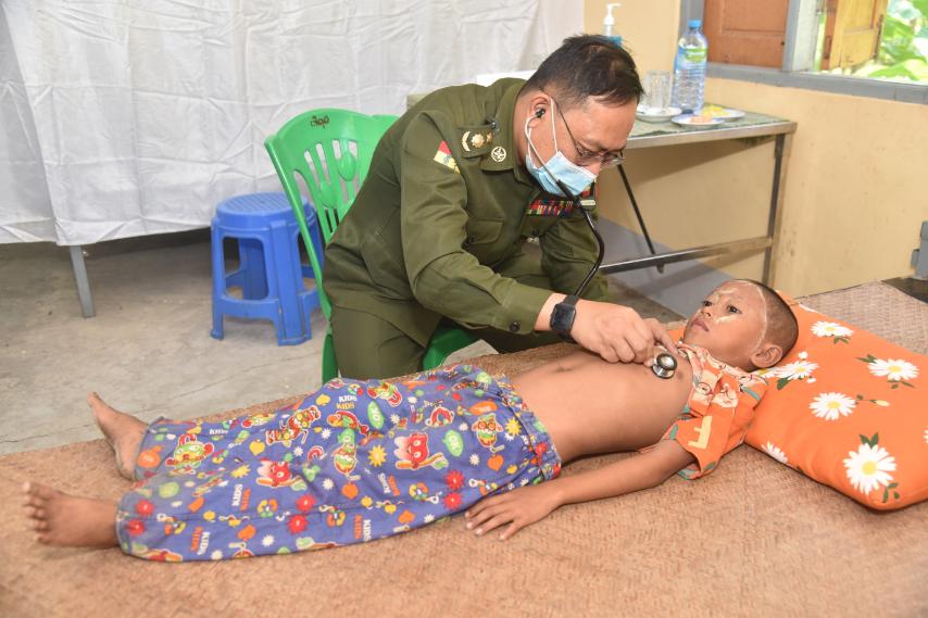ထို့အပြင်အထွေထွေခွဲစိတ်လူနာ ၁၅ ဦးတို့ကို ခွဲစိတ်ကုသပေးခြင်းများ ဆောင်ရွက်ပေးပြီး ဓာတ်မှန်ရိုက်လူနာ ၈ ဦး၊ တယ်လီဗေးရှင်းဓါတ်မှန်ရိုက်လူနာ ၃၁ ဦး၊ ECG စက်ဖြင့် နှလုံး စမ်းသပ်လူနာ ၃၂ ဦးနှင့် ဓာတ်ခွဲစမ်းသပ်လူနာ ၄၃ ဦးတို့ကို ရောဂါရှာဖွေ စမ်းသပ်ပေးခြင်းများ ဆောင်ရွက်ပေးပြီး ဆေးရုံတက်ရောက်ကုသရန် လိုအပ်သည့်လူနာ ၇ ဦးတို့ကို နီးစပ်ရာ တပ်မတော်ဆေးရုံများသို့ တက်ရောက်ကုသနိုင်ရေး စီစဉ်ဆောင်ရွက်ပေးသည်။