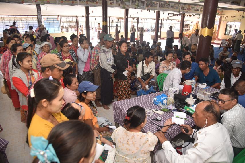 ဧရာဝတီမြစ်ကြောင်းတစ်လျှောက်ရှိ ဒေသခံပြည်သူများအား ကျန်းမာရေးစောင့်ရှောက်မှုလုပ်ငန်းများ ဆောင်ရွက်ပေးရန်အတွက် တပ်မတော်မြစ်တွင်းသွား ဆေးရုံရေယာဉ်(ရွှေပုဇွန်)၊ မြစ်ရေယာဉ်(စကု)တို့နှင့်အတူ လိုက်ပါလာသည့် တပ်မတော်မှ ပါရဂူများ၊ ဆေးမှူးများ၊ သူနာပြုများပါဝင်သော နယ်လှည့်အထူးကုဆေးအဖွဲ့သည် ယနေ့တွင် ဧရာဝတီတိုင်းဒေသကြီး၊ မအူပင်ခရိုင်၊ မအူပင်မြို့နယ်၊ ထနီးကျေးရွာ၊ အောင်ကျိုက္ခမီဘုန်းကြီးကျောင်းရှိ ဓမ္မရတနာဗိမာန်တွင် အခြေပြု၍ အဆိုပါမြို့နှင့် ပတ်ဝန်းကျင်ကျေးရွာများမှ ဒေသခံပြည်သူ ၅၈၃ ဦးအား ကျန်းမာရေးစောင့်ရှောက်မှုလုပ်ငန်းများ ဆက်လက်ဆောင်ရွက်ပေးသည်။