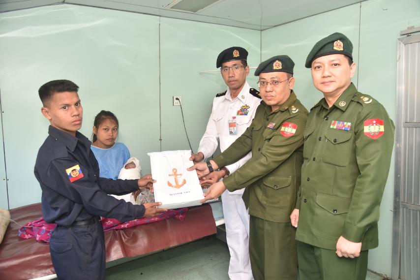 ထို့ပြင် တပ်မတော်မြစ်တွင်းသွား ဆေးရုံရေယာဉ်(ရွှေပုဇွန်)ပေါ်၌ ဇန်နဝါရီလ ၁၅ ရက်၊ ည ၉ နာရီ ၂၉ မိနစ်ခန့်တွင် မအူပင်မြို့နယ်၊ ကွန်ဒိုင်းကလေးကျေးရွာနေ မောင်အောင်အောင်ဦး၏ ဇနီးဖြစ်သူ မသန္တာဌေးကို ၇ ပေါင် ၃ အောင်စရှိ သားဦးရတနာအား အောင်မြင်စွာ ခွဲစိတ်မွေးဖွားပေးနိုင်ခဲ့ပြီး မိခင်နှင့်ကလေးမှာ ကျန်းမာရေးကောင်းမွန်လျက်ရှိသည်။ အဆိုပါကလေးငယ်အား ကာကွယ်ရေးဦးစီးချုပ်(ရေ)မှ ပေးအပ်သည့် ငွေသားနှင့် လက်ဆောင်ပစ္စည်းများကို တာဝန်ရှိသူတစ်ဦးက ကိုယ်စားပေးအပ်ခဲ့သည်။