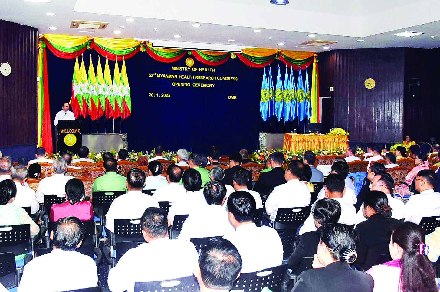 “(၅၃) ကြိမ်မြောက် မြန်မာနိုင်ငံကျန်းမာရေးဆိုင်ရာသုတေသနညီလာခံ” ဖွင့်ပွဲအခမ်းအနားကို ယနေ့နံနက်ပိုင်းက ရန်ကုန်မြို့ ဒဂုံမြို့နယ် ဇီဝကလမ်း အမှတ် (၅) ရှိ ဆေးသုတေသနဦးစီးဌာန၌ ကျင်းပသည်။