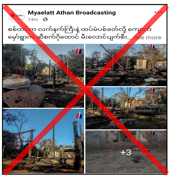 ယင်းမာပင်မြို့နယ်၊ ကျောက်မှော်ကျေးရွာအား လုံခြုံရေးတပ်ဖွဲ့ဝင်များက လက်နက်ကြီးဖြင့်ပစ်ခတ်သဖြင့် ဆီစက်ဂိုထောင်မီးလောင်ပျက်ဆီးဟု မဟုတ်မမှန်၊ သတင်းတု၊ သတင်းမှားများ ရေးသားဖြန့်ဝေလျက်ရှိ