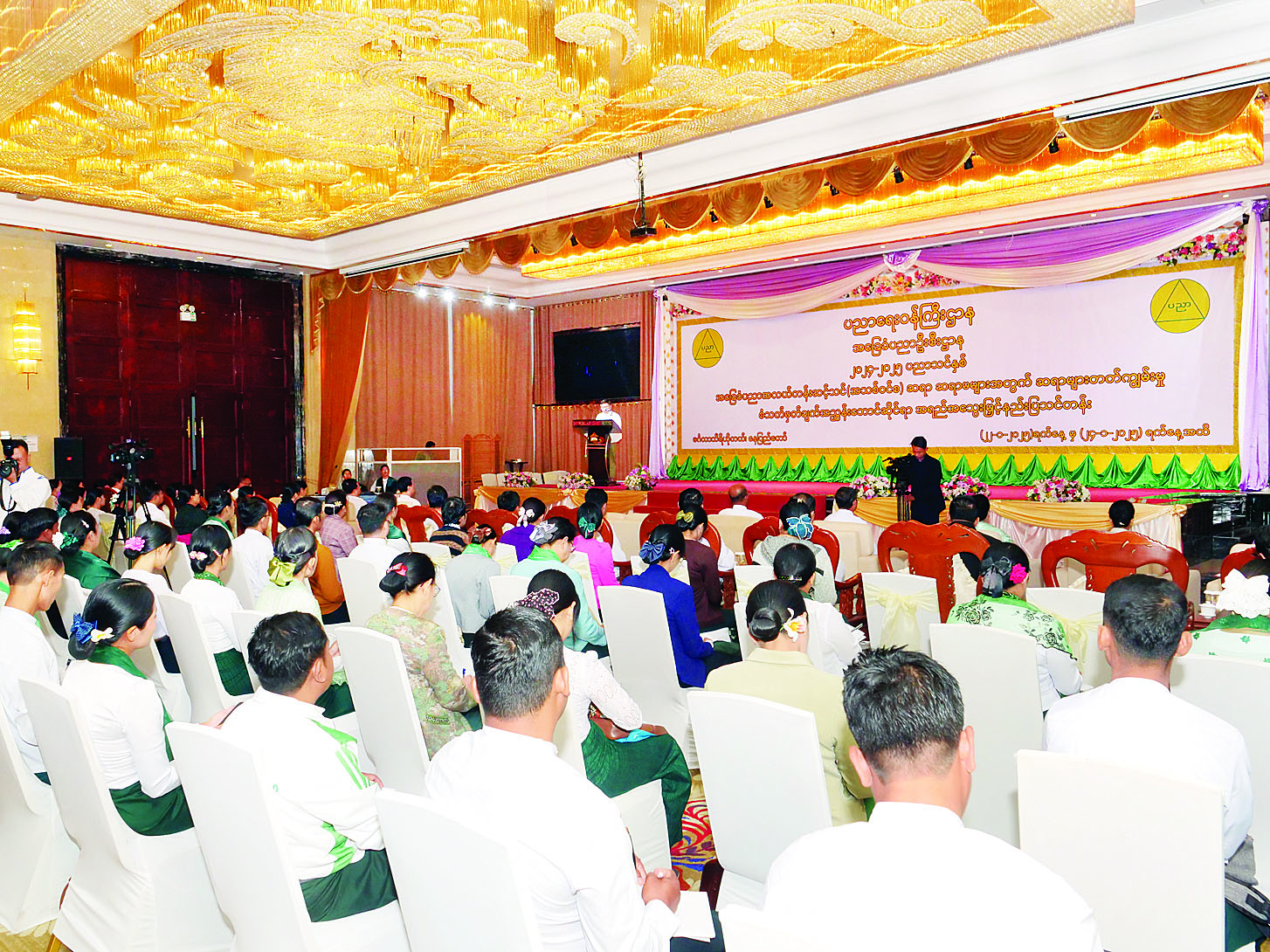 ၂၀၂၄-၂၀၂၅ ပညာသင်နှစ် အခြေခံပညာအလယ်တန်းဆင့်သင် ဆရာ ဆရာမများအတွက် ဆရာများ တတ်ကျွမ်းမှုစံသတ်မှတ်ချက်အညွှန်းဘောင်ဆိုင်ရာ အရည်အသွေးမြှင့် နည်းပြသင်တန်း ဖွင့်ပွဲအခမ်းအနားကို ယနေ့နံနက် ၉ နာရီတွင် နေပြည်တော် ဇမ္ဗူသီရိမြို့နယ် မင်္ဂလာသီရိဟိုတယ်၌ ကျင်းပရာ ပညာရေးဝန်ကြီးဌာန ပြည်ထောင်စုဝန်ကြီး ဒေါက်တာညွန့်ဖေ၊ ဒုတိယဝန်ကြီး ဒေါက်တာဇော်မြင့်နှင့် ဒေါက်တာမိုးဇော်ထွန်း၊ ဌာနဆိုင်ရာ အကြီးအကဲများနှင့် တာဝန်ရှိသူများ၊ သင်တန်း နည်းပြများ၊ သင်တန်းသား သင်တန်းသူများနှင့် ဖိတ်ကြားထားသူများ တက်ရောက်ကြသည်။