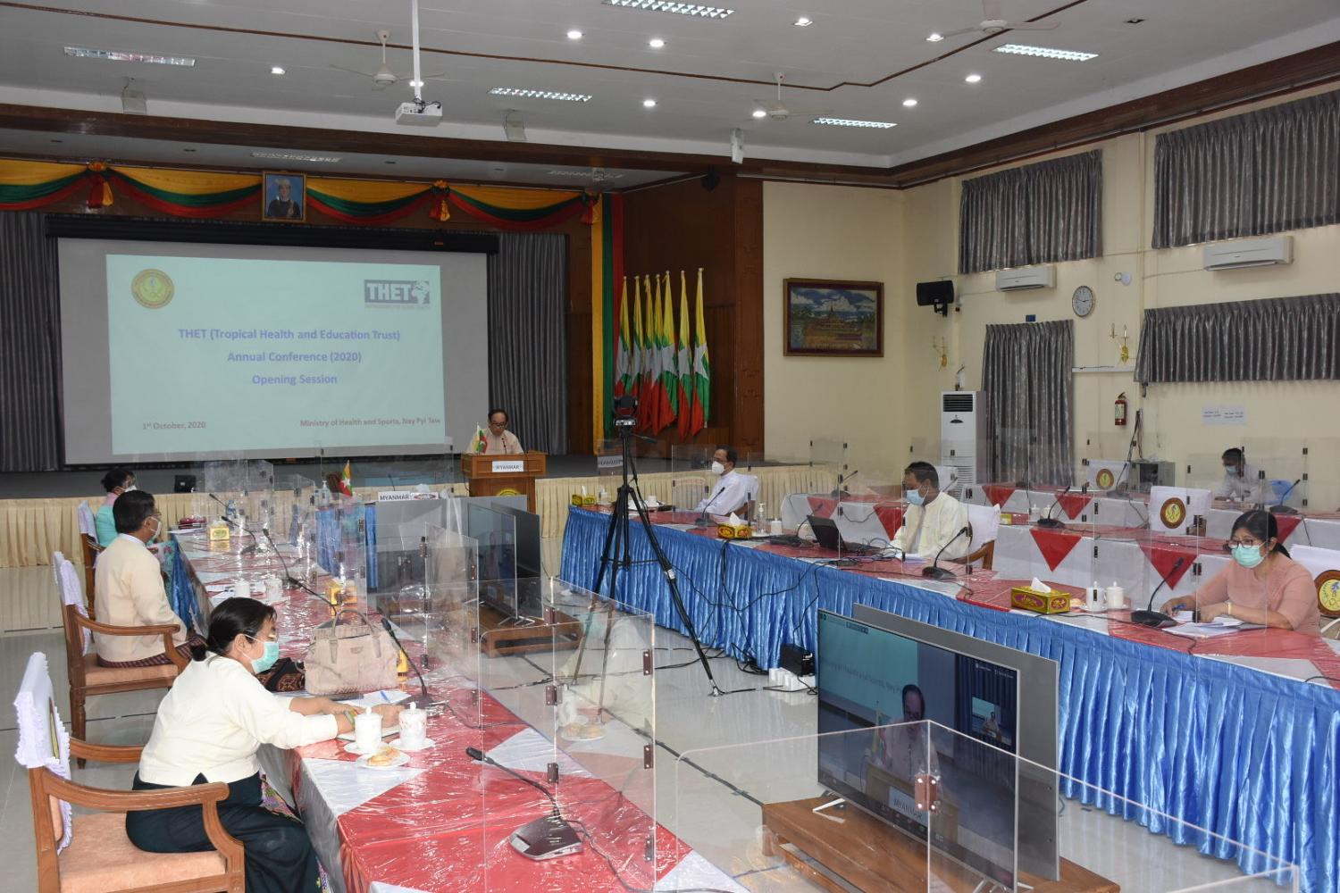 အင်္ဂလန်နိုင်ငံ အခြေစိုက် Tropical Health and Education Trust (THET) အဖွဲ့၏ (၂၀၂၀) ပြည့်နှစ်၊ နှစ်ပတ်လည် ညီလာခံ ဖွင့်ပွဲအခမ်းအနားကို ယနေ့မွန်းလွဲ ၂နာရီခွဲက Video conferencing စနစ်ဖြင့်ကျင်းပရာ ကျန်းမာရေးနှင့်အားကစားဝန်ကြီးဌာန ပြည်ထောင်စု ဝန်ကြီး ဒေါက်တာမြင့်ထွေး အဖွင့်မိန့်ခွန်း ပြောကြားသည်။