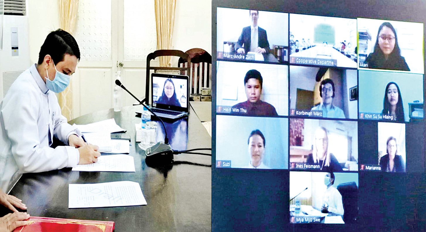 ဂျာမနီနိုင်ငံသမဝါယမအဖွဲ့ချုပ်   (DGRV)နှင့်စိုက်ပျိုးရေး၊ မွေးမြူရေးနှင့်ဆည်မြောင်းဝန်ကြီးဌာန  သမဝါယမ ဦးစီးဌာနတို့  ပူးပေါင်းကာ မြန်မာနိုင်ငံ သမဝါယမအသင်းများ  ဖွံ့ဖြိုးတိုးတက်ရေးအတွက်      မြန်မာနိုင်ငံ အတွင်းရှိ ကိုယ့်အားကိုယ်ကိုး သမဝါယမအသင်းများ  ဖွံ့ဖြိုးတိုးတက်စေရန် မြှင့်တင်ပေးခြင်း     စီမံကိန်းကို  ပူးပေါင်းဆောင်ရွက်သွားနိုင်ရန်   ရည်ရွယ်၍ နှစ်ဦးသဘောတူ နားလည်မှုစာချွန်လွှာ စာချုပ် (MoU) လက်မှတ် ရေးထိုးပွဲ အခမ်းအနားကို   ယနေ့တွင်  အွန်လိုင်း အစီအစဉ်ဖြင့်   ကျင်းပခဲ့ရာ   မြန်မာ နိုင်ငံ ဆိုင်ရာ   ဂျာမနီနိုင်ငံသံရုံး    Head    of     Development  Cooperation   ဖြစ်သူ  Ms. Marianna  Knirsch၊  DGRV  ရုံး  မြန်မာနိုင်ငံ  ကိုယ်စားလှယ်     Project Director, Mr.  Marc   Andre   Zach နှင့်    DGRV  မှတာဝန်ရှိသူများ၊  သမဝါယမဦးစီးဌာန  ညွှန်ကြားရေးမှူးချုပ်   ဦးအောင်သူရ၊ ဒုတိယညွှန်ကြားရေးမှူးချုပ်၊   ညွှန်ကြားရေးမှူးများနှင့်    တာဝန်ရှိသူများ  တက်ရောက်ခဲ့ကြကြောင်းသိရသည်။