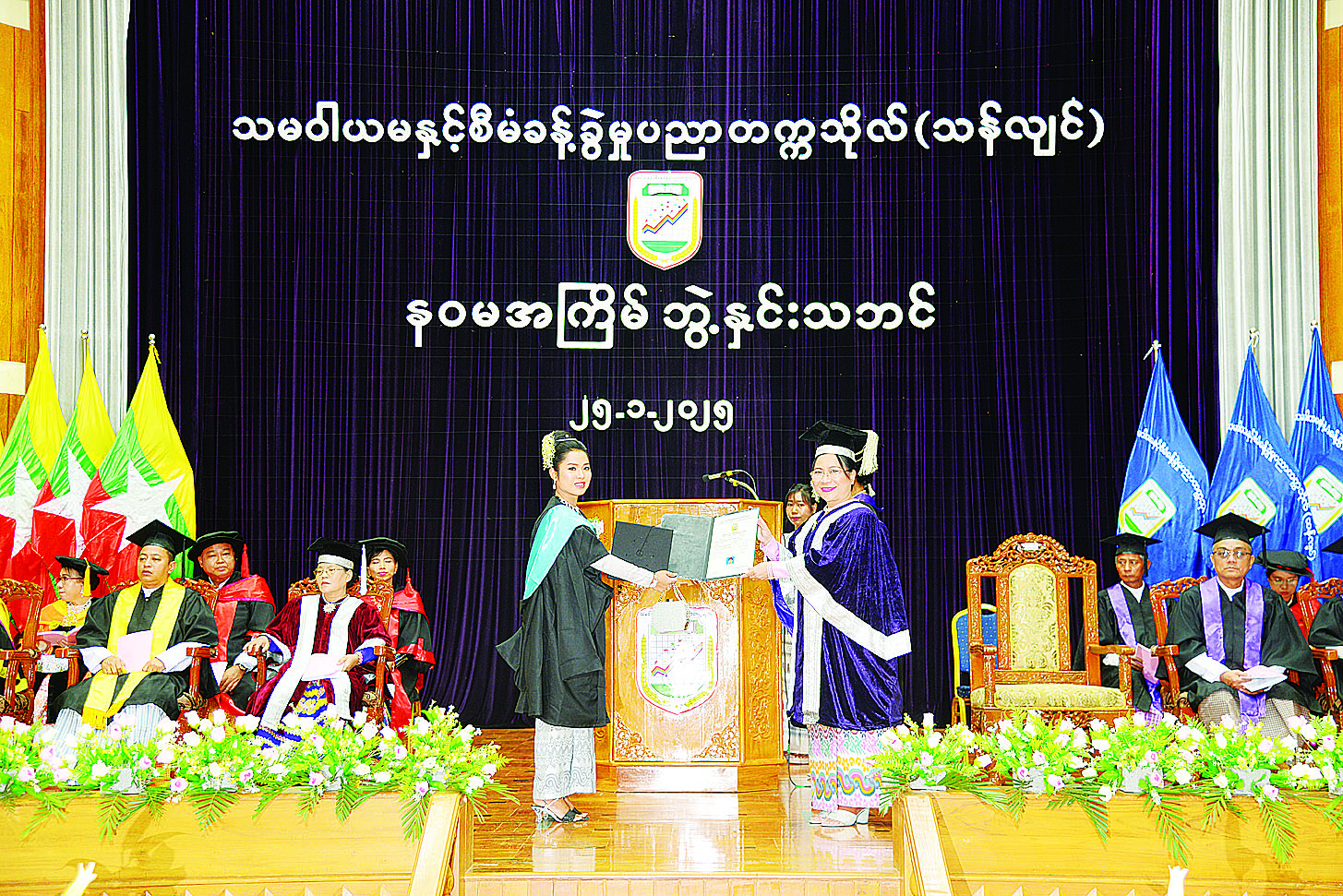 သမဝါယမနှင့် စီမံခန့်ခွဲမှုပညာတက္ကသိုလ် (သန်လျင်) ၏ ၂၀၂၁-၂၀၂၂ ပညာသင်နှစ်နှင့် ၂၀၂၃-၂၀၂၄ ပညာသင်နှစ်များအတွက် နဝမအကြိမ် ဘွဲ့နှင်းသဘင်အခမ်းအနားကို ယနေ့နံနက် ၉ နာရီက သမဝါယမနှင့် စီမံခန့်ခွဲမှုပညာတက္ကသိုလ် (သန်လျင်) ဘက်စုံသုံးခန်းမ၌ ကျင်းပသည်။