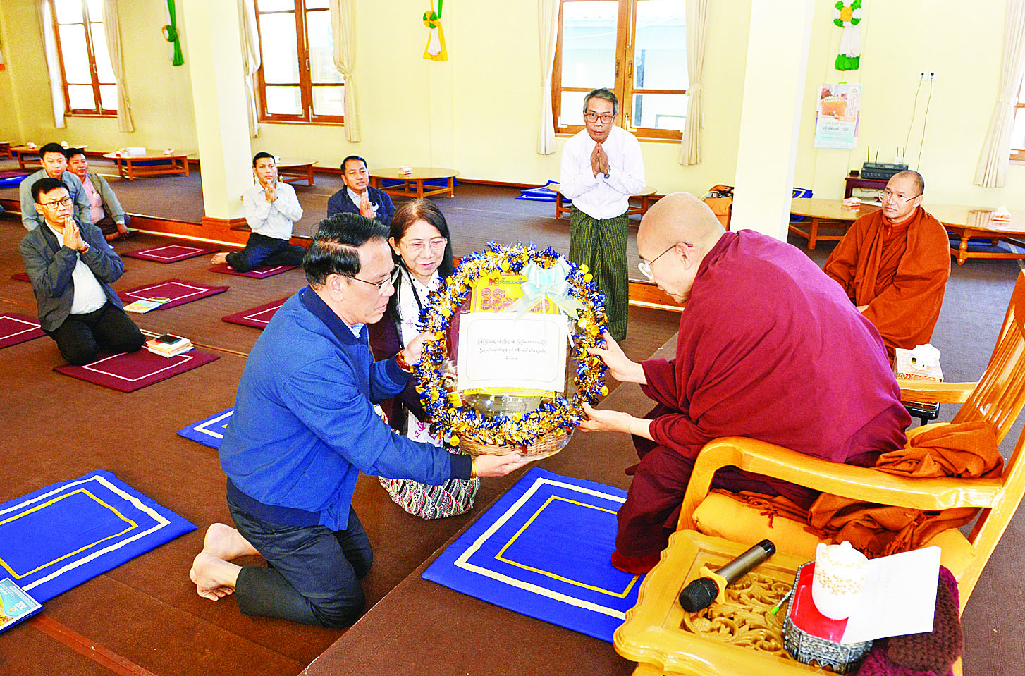မွန်းလွဲပိုင်းကလည်း ပြည်ထောင်စုဝန်ကြီးသည် တောင်ကြီးမြို့ ဘုရားဖြူရပ်ကွက်ရှိ ရှမ်းပြည်နယ် ဗုဒ္ဓတက္ကသိုလ်သို့သွားရောက်၍ ပါမောက္ခချုပ်ဆရာတော် ပါမောက္ခဒေါက်တာ ဓမ္မသာမိ (အောက် စဖို့ဒ် ဆရာတော်) အား သွားရောက်ဖူးမြော်ကြည်ညိုပြီး လှူဖွယ်ဝတ္ထုပစ္စည်းများ ဆက်ကပ်လှူဒါန်းသည်။