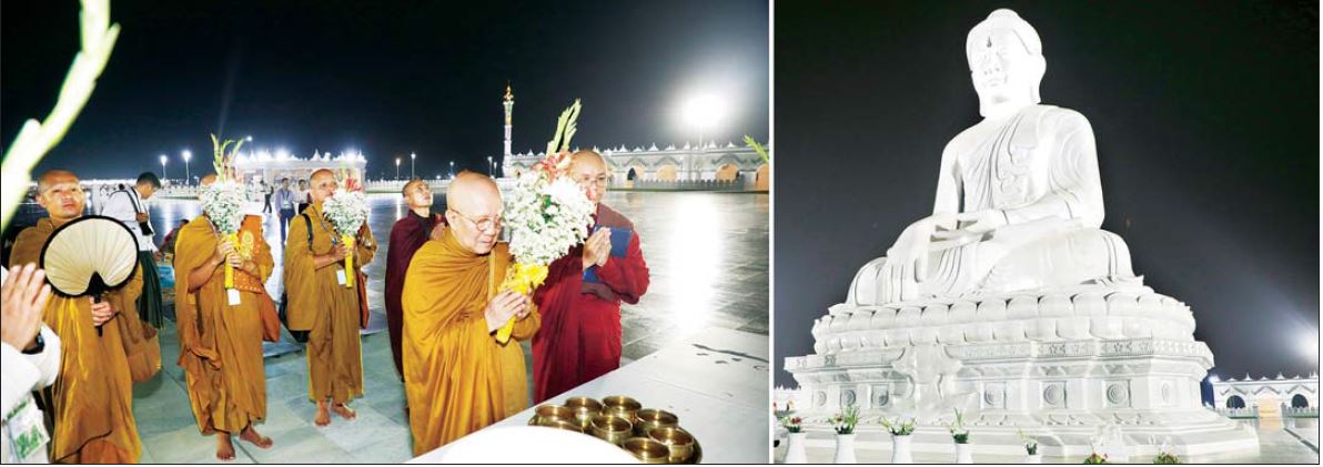 ထို့နောက် နိုင်ငံတော်စီမံအုပ်ချုပ်ရေးကောင်စီဥက္ကဋ္ဌ နိုင်ငံတော်ဝန်ကြီးချုပ်က ကမ္ဘောဒီးယားနိုင်ငံ၏ အဓိပတိဆရာတော်ကြီးထံသို့ မာရဝိဇယဗုဒ္ဓရုပ်ပွားတော်မြတ်ပုံစံတူ ကျောက်ဆစ်ဗုဒ္ဓရုပ်ပွားတော်မြတ်နှင့် လှူဖွယ်ဝတ္ထုပစ္စည်းများကို ဆက်ကပ်လှူဒါန်းပြီး ဆရာတော်ကြီးက နိုင်ငံတော်စီမံအုပ်ချုပ်ရေးကောင်စီဥက္ကဋ္ဌ နိုင်ငံတော်ဝန်ကြီးချုပ်ထံ ဗုဒ္ဓရုပ်ပွားတော်မြတ်နှင့် ဓမ္မလက်ဆောင်များပေးအပ်သည်။