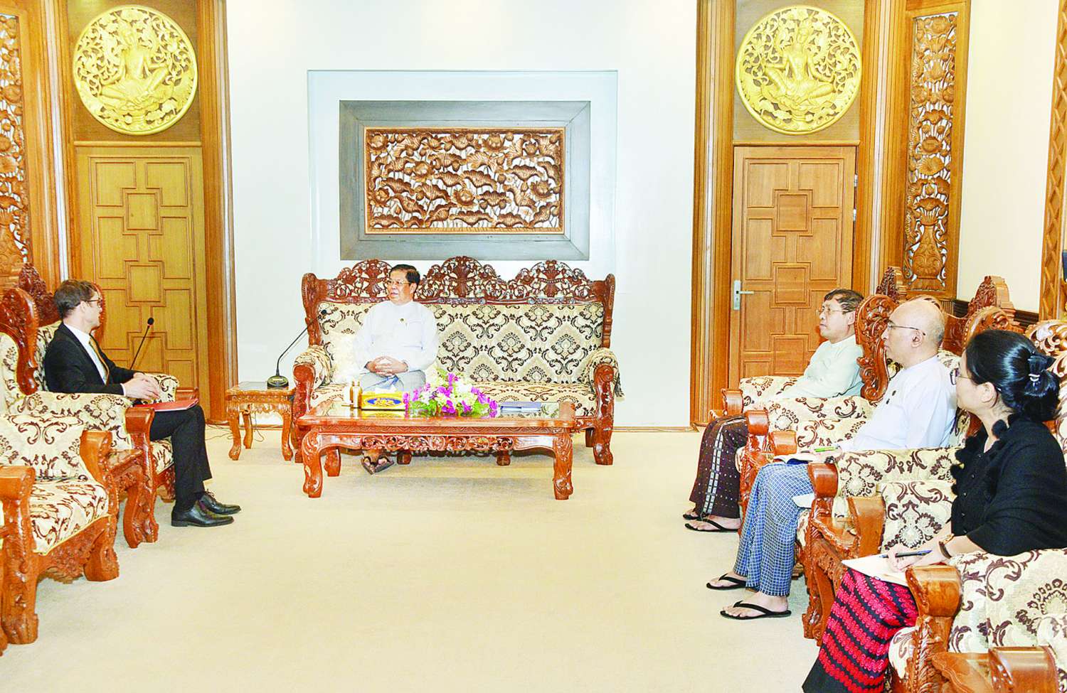 ဒုတိယဝန်ကြီးချုပ်နှင့် နိုင်ငံခြားရေးဝန်ကြီးဌာန ပြည်ထောင်စုဝန်ကြီး ဦးသန်းဆွေသည် အပြည်ပြည်ဆိုင်ရာကြက်ခြေနီကော်မတီ (ICRC) ၏ မြန်မာနိုင်ငံဆိုင်ရာဌာနေကိုယ်စားလှယ် Mr. Arnaud de Baecque အား ယနေ့မွန်းလွဲပိုင်းတွင် နေပြည်တော်ရှိ နိုင်ငံခြားရေးဝန်ကြီးဌာန၌ လက်ခံတွေ့ဆုံသည်။