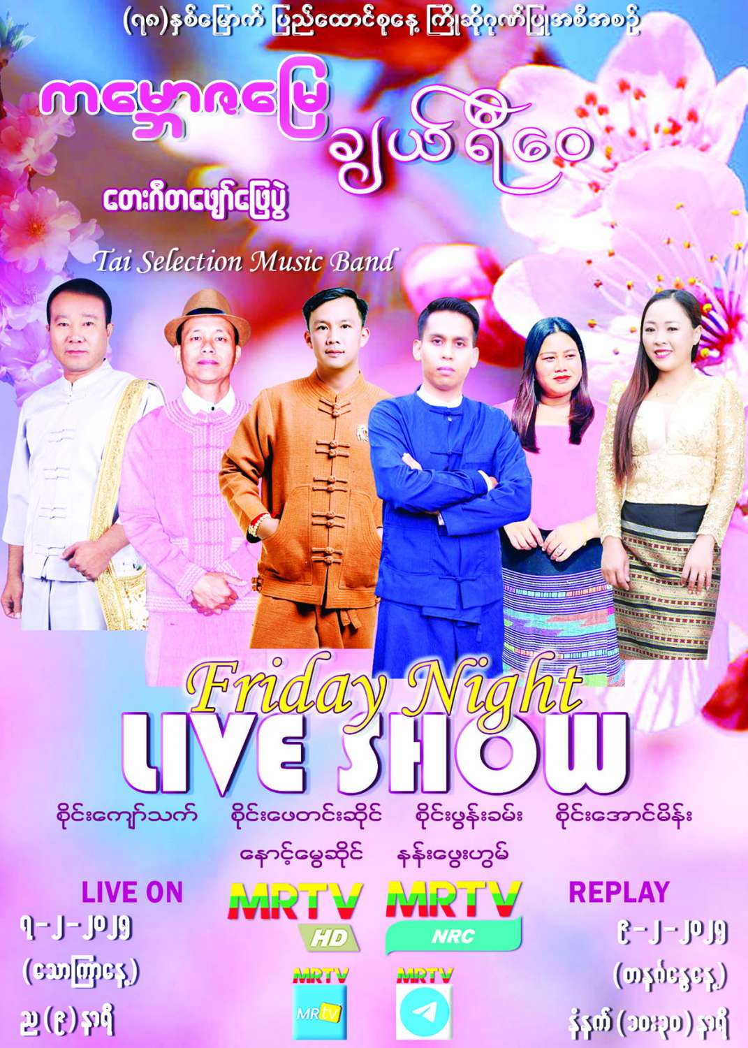 မြန်မာ့အသံနှင့်ရုပ်မြင်သံကြားအနေဖြင့် ပြည်သူများ အပန်းပြေစေရန်နှင့် စိတ်ခွန်အားသစ်များ ရရှိနိုင်ရန် ရည်ရွယ်ပြီး Friday Night Live Show တေးဂီတဖျော်ဖြေပွဲများကို အပတ်စဉ် သောကြာနေ့ ညတိုင်းဆန်းသစ်တင်ဆက်လျက်ရှိရာ (၇၈) နှစ်မြောက် ပြည်ထောင်စုနေ့ကို ကြိုဆိုဂုဏ်ပြုသောအားဖြင့် တိုင်းဒေသကြီးနှင့် ပြည်နယ်များမှ နာမည်ရ တိုင်းရင်းသားတေးသံရှင်များက ပွဲစဉ်(၇)ပွဲဖြင့် ၂၀၂၄ ခုနှစ်၊ ဒီဇင်ဘာ ၂၇ ရက်မှ ၂၀၂၅ ခုနှစ် ဖေဖော်ဝါရီ ၇ ရက်အထိ ဖျော်ဖြေတင်ဆက်မှုတွင် ပွဲစဉ် (၇) “ကမ္ဘောဇမြေချယ်ရီဝေ” တေးဂီတဖျော်ဖြေပွဲကို ၂၀၂၅ ခုနှစ်၊ ဖေဖော်ဝါရီ ၇ ရက်၊ (သောကြာနေ့) ည ၉ နာရီခန့်၌ မြန်မာ့အသံနှင့် ရုပ်မြင်သံကြား၏ MRTV-HD Channel မှ တိုက်ရိုက် (Live) ထုတ်လွှင့် ပြသမည်ဖြစ်သည်။