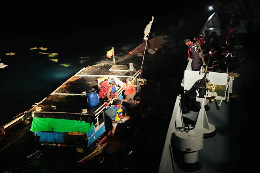 ရခိုင်ပြည်နယ်၊ ဂွမြို့နယ်ရှိ မြန်မာ့ပင်လယ်ပြင်အတွင်း လုံခြုံရေးဆောင်ရွက်နေသည့် တပ်မတော် (ရေ) မှ တပ်ဖွဲ့ဝင်များသည် ဂွမြို့၏အနောက်တောင်ဘက်ရေမိုင် ၁၈.၅ မိုင်အကွာ၌ ရွှေကြယ်လင်း ၁ အမည်ရှိ ကုန်တင်လှေတစ်စီးသည် လှိုင်းပုတ်၍ လှေဝမ်းပျဉ်ချပ်များပြုတ်ထွက်ပြီး ရေဝင်နစ်မြုပ်နေကြောင်း ဆက်သွယ်ရေးလေလှိုင်းမှသတင်းရရှိ၍ ယနေ့နံနက် ၁ နာရီ ၂၅ မိနစ်တွင် ရှာဖွေကယ်ဆယ်ရေးလုပ်ငန်းများ သွားရောက်ဆောင်ရွက်ရာ ၅ နာရီ ၄၅ မိနစ်ခန့်တွင် ရေဝင်နစ်မြုပ်နေသည့် ကုန်တင်လှေအနီးသို့ရောက်ရှိခဲ့ပြီး လှေပေါ်တွင်လိုက်ပါလာသော လှေသား ၅ ဦးအား ရေယာဉ်ပေါ်သို့ ကယ်ဆယ်တင်ဆောင်ကာ လိုအပ်သည့် ကျန်းမာရေးစစ်ဆေးပေးခြင်းများ ဆောင်ရွက်ပေးပြီး အဝတ်အထည်နှင့် စားသောက်ဖွယ်ရာများပေးအပ်၍ လှေသားများအား သက်ဆိုင်ရာသို့ စနစ်တကျလွှဲပြောင်းပေးအပ်သွားမည်ဖြစ်ကြောင်း သတင်းရရှိသည်။