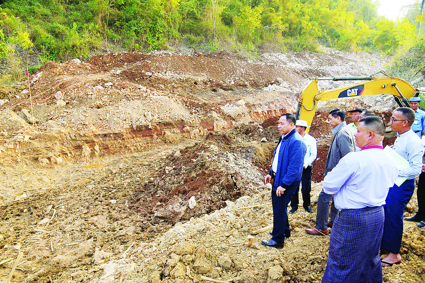 ယင်းနောက် ကလောမြို့နယ် ရွှေမင်းဖုန်းကျေးရွာတွင် သဘာဝဘေးဒဏ်ကြောင့် လျှိုအတွင်း ရေထွက်ပေါက်မရှိဘဲ ထူးပေါက်ပိတ်ဆို့မှုကြောင့် ရေစီးဆင်းနိုင်ရန် ရေနုတ်မြောင်းတူးဖော်နေမှုကို ကြည့်ရှုစစ်ဆေးရာ ဒေသခံများက ရေအမြန်ကျဆင်းစေရေးအတွက် ရေမြောင်းတူးဆောင်ရွက်နေမှု အခြေအနေများကို ရှင်းလင်းတင်ပြပြီး နိုင်ငံတော်စီမံအုပ်ချုပ်ရေးကောင်စီအဖွဲ့ဝင်နှင့် ပြည်ထောင်စုဝန်ကြီးက လိုအပ်သည်များကို ပေါင်းစပ်ညှိနှိုင်း ဆောင်ရွက်ပေးခဲ့သည်။