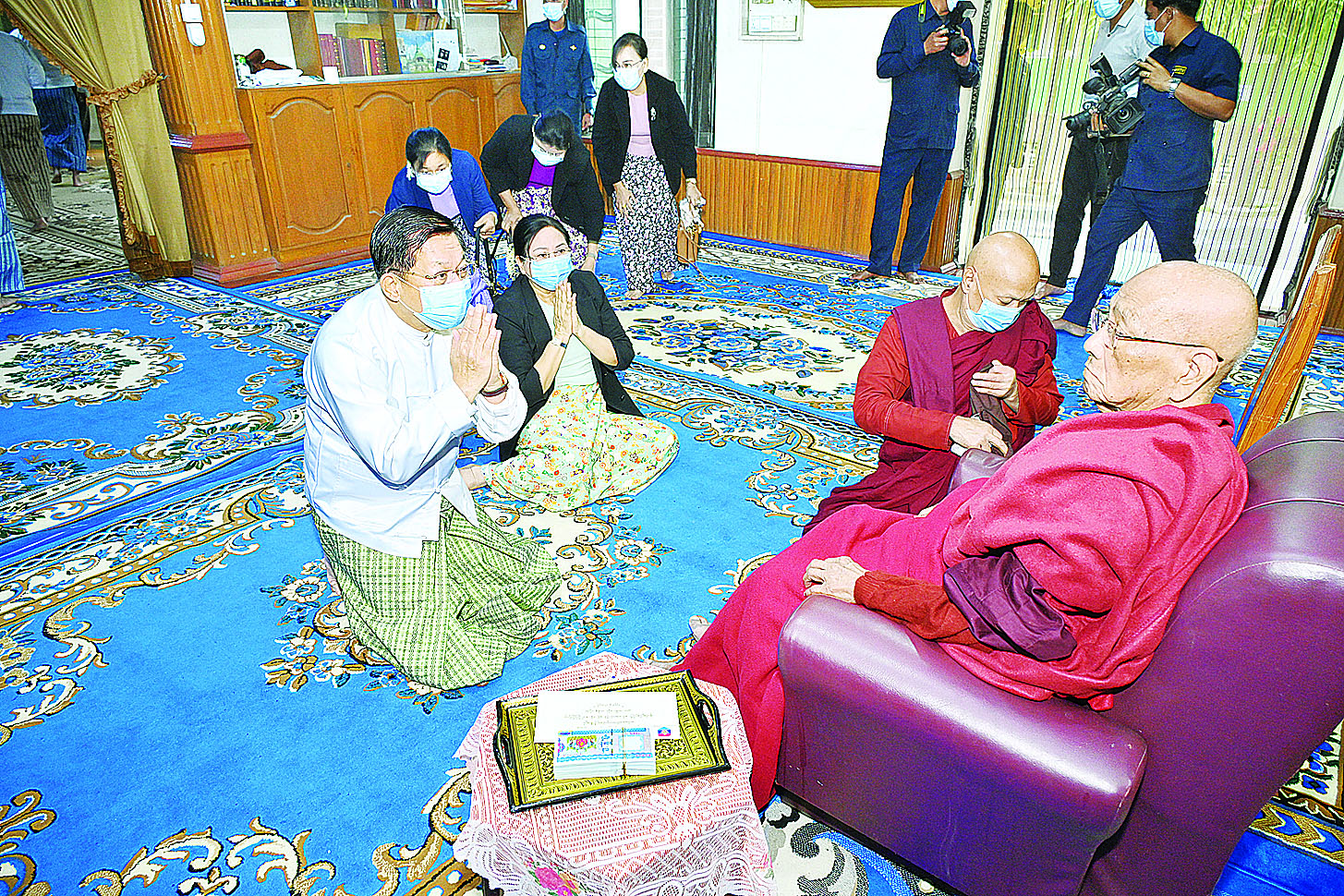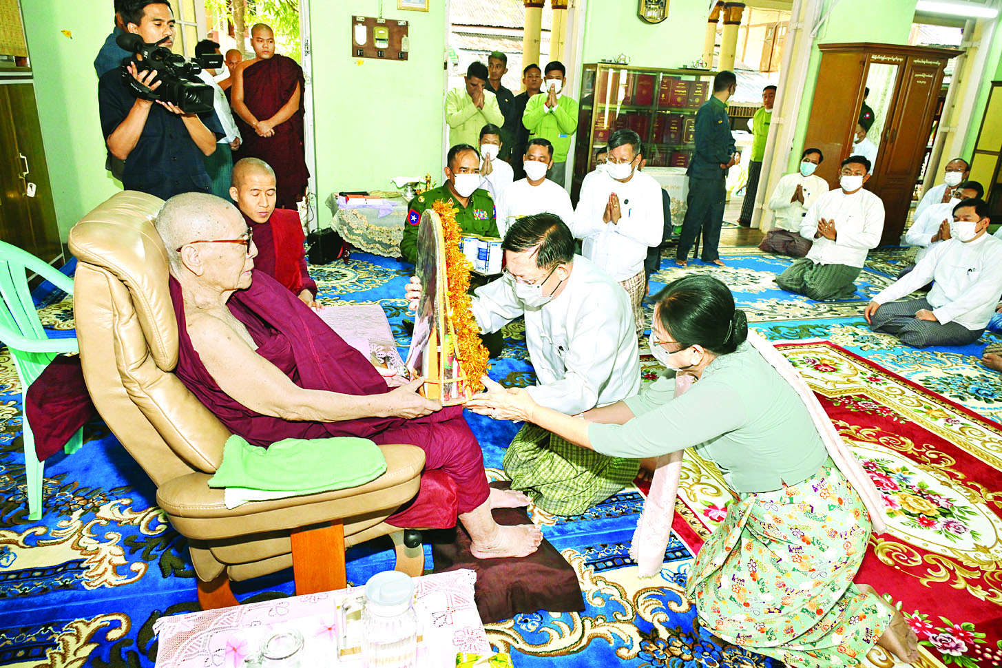 ထို့နောက် နိုင်ငံတော်စီမံအုပ်ချုပ်ရေးကောင်စီဥက္ကဋ္ဌ နိုင်ငံတော်ဝန်ကြီးချုပ်နှင့် ဇနီးတို့က ဆရာတော်ကြီးအား လှူဖွယ်ပစ္စည်းများ၊ ဆေးပစ္စည်းများ၊ အာဟာရဖြည့်ငှက်သိုက်နှင့် စားသောက်ဖွယ်ရာများ၊ နဝကမ္မအလှူတော်ငွေများကို ဆက်ကပ်လှူဒါန်းပြီး ဖူးမြော်ကြည်ညိုခဲ့ကြသည်။
