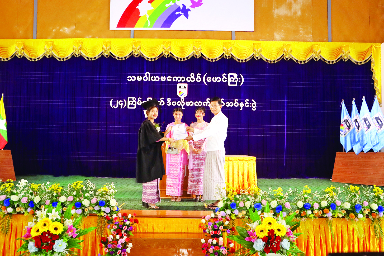 သမဝါယမနှင့် ကျေးလက်ဖွံ့ဖြိုးရေးဝန်ကြီးဌာန သမဝါယမကောလိပ် (ဖောင်ကြီး) ၏ ၂၀၁၈-၂၀၁၉ ပညာသင်နှစ်မှ ၂၀၂၃-၂၀၂၄ ပညာသင်နှစ်အထိ စီးပွားရေးလုပ်ငန်း စာရင်းကိုင်ဒီပလိုမာ (Diploma in Business Accounting)၊ ဈေးကွက်ဖော်ဆောင်ရေး စီမံခန့်ခွဲမှုဒီပလိုမာ (Diploma in Marketing Management)၊ ဒေသဆိုင်ရာဖွံ့ဖြိုးမှုဒီပလိုမာ (Diploma in Regional Development)၊ အသုံးချ စာရင်းအင်းဒီပလိုမာ (Diploma in Applied Statistics)၊ လူမှုစီးပွားရေးလုပ်ငန်းစီမံခန့်ခွဲမှုဒီပလိုမာ (Diploma in Social Enterprises Management) လက်မှတ်များအပ်နှင်းပွဲအခမ်းအနားကို ယနေ့နံနက်ပိုင်းတွင် ဖောင်ကြီးကောလိပ်စုဝေးခန်းမဆောင်၌ ကျင်းပသည်။
