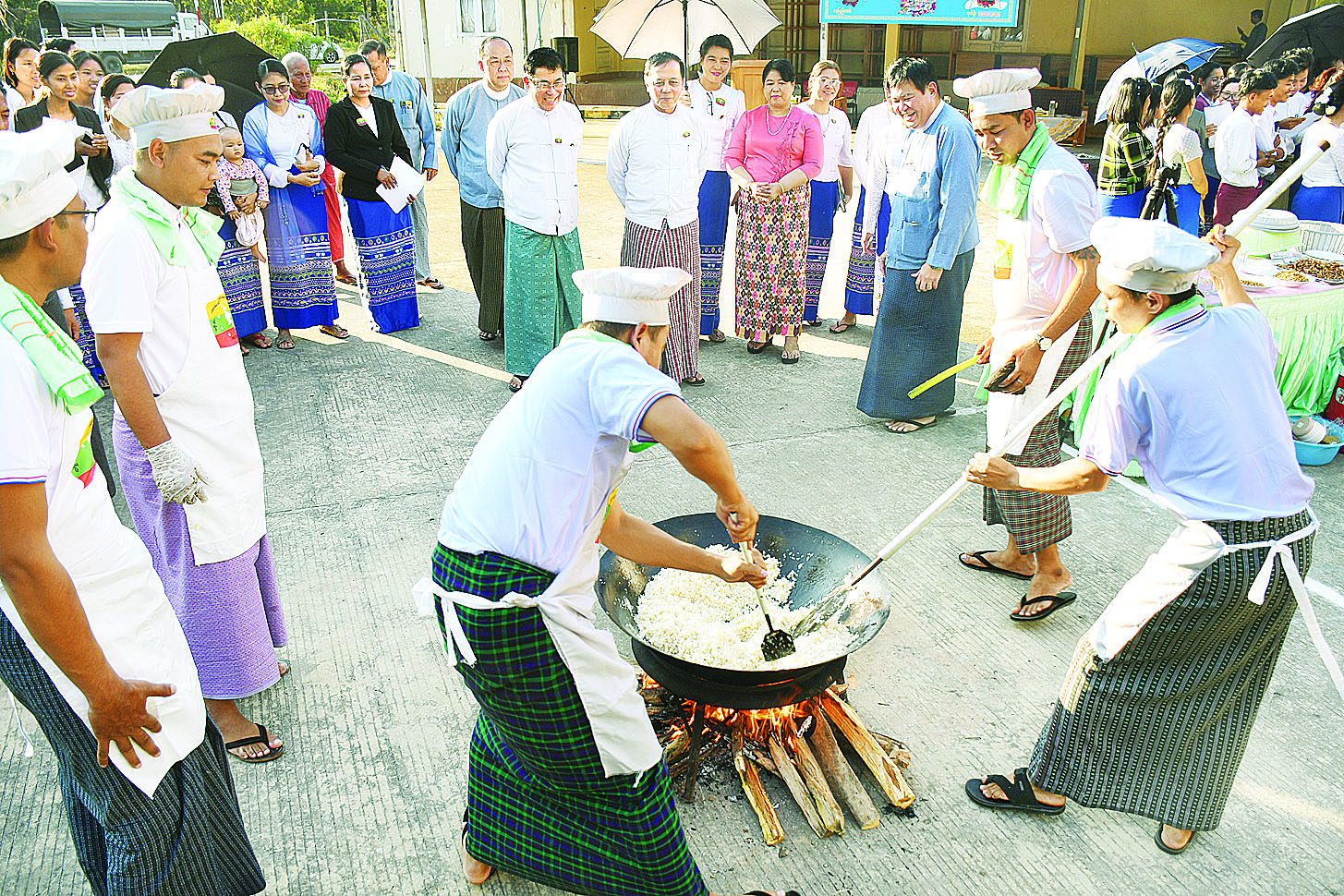 တိုင်းရင်းသားလူမျိုးများရေးရာ ဝန်ကြီးဌာန၏ ပဉ္စမအကြိမ်မြောက် မြန်မာ့ရိုးရာထမနဲထိုးပြိုင်ပွဲကို ယနေ့ညနေပိုင်းတွင် အဆိုပါဝန်ကြီးဌာန၌ကျင်းပရာ တိုင်းရင်းသားလူမျိုးများရေးရာ ဝန်ကြီးဌာန ပြည်ထောင်စုဝန်ကြီးခွန်သန့်ဇော်ထူးနှင့် ဇနီး၊ ဒုတိယဝန်ကြီး ဦးဇော်အေးမောင်၊ တာဝန်ရှိသူများနှင့် ဝန်ထမ်းများပျော်ရွှင်စွာ စုပေါင်းပါဝင်ကြသည်။