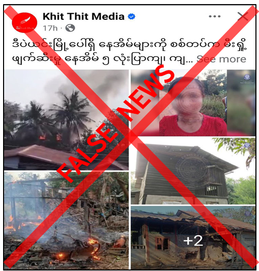 အဆိုပါသတင်းနှင့်ပတ်သက်၍ သက်ဆိုင်ရာလုံခြုံရေးတာဝန်ရှိသူတစ်ဦးထံ ဆက်သွယ်မေးမြန်းခဲ့ရာ လုံခြုံရေးတပ်ဖွဲ့ဝင်များက နေအိမ်များကို မီးရှို့ဖျက်ဆီးခဲ့သည်ဆိုသည့်သတင်းမှာ သတင်းအမှားသာဖြစ်ကြောင်း သိရှိရပြီး အကြမ်းဖက်သမားများအနေဖြင့် နယ်မြေတည်ငြိမ်အေးချမ်းမှုကို မလိုလားဘဲ ငြိမ်းချမ်းစွာ နေထိုင်လျက်ရှိသော ပြည်သူလူထုအား ငွေကြေးကောက်ခံခြင်း၊ လူသစ်စုဆောင်းခြင်းနှင့် အနိုင်ကျင့်ခြိမ်းခြောက်မှုများအား ဥပဒေမဲ့လုပ်ဆောင်လျက်ရှိပြီး ၎င်းတို့အပေါ် ထောက်ခံအားပေးမှုမရှိသည့် ရပ်ကွက်၊ ကျေးရွာများရှိ လူနေအဆောက်အဦများအား မီးရှို့ဖျက်ဆီးခြင်းများ လုပ်ဆောင်လျက်ရှိကြောင်း၊ လုံခြုံရေးတပ်ဖွဲ့ဝင်များအနေဖြင့် ပြည်သူများ ငြိမ်းချမ်းစွာ နေထိုင်နိုင်ရေးအတွက် နယ်မြေလုံခြုံရေးလုပ်ငန်းများ ဆောင်ရွက်လျက်ရှိသည်ကို တရားမဝင်ပြည်ဖျက်မီဒီယာများက ယခုကဲ့သို့ အခြေအမြစ်မရှိသည့် ဓာတ်ပုံများကို အသုံးပြု၍ ပြည်သူများ အထင်အမြင်လွဲမှားစေရန် မဟုတ်မမှန် လုပ်ကြံရေးသားဖြန့်ဝေနေခြင်းဖြစ်ကြောင်း သတင်းရရှိသည်။