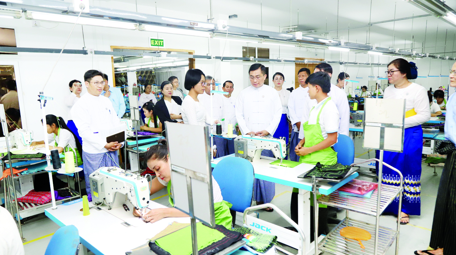 ဆက်လက်၍ ပြည်ထောင်စုဝန်ကြီးသည် အထည်ချုပ်အခြေခံသင်တန်းဖွင့်လှစ်ပို့ချနေမှု၊ EPS အစီအစဉ်ဖြင့် သွားရောက်အလုပ်လုပ်ကိုင်မည့် မြန်မာအလုပ်သမားများ ကိုရီးယားဘာသာအရည်အချင်းစစ်စာမေးပွဲ ဖြေဆိုနေမှု၊ ပြည်ပနိုင်ငံများသို့ သွားရောက်အလုပ်လုပ်ကိုင်ကြမည့် မြန်မာအလုပ်သမားများအတွက် လုပ်ငန်းခွင်အကြိုသင်တန်းဖွင့်လှစ်ပို့ချဆောင်ရွက်နေမှုများကို လှည့်လည်ကြည့်ရှုစစ်ဆေးပြီး စည်းကမ်းနှင့်အညီ နေထိုင်၍ မိမိ၏လုံခြုံရေးကို ဂရုစိုက်ထိန်းသိမ်းရန်လိုအပ်ကြောင်း၊ ရောက်ရှိအလုပ်လုပ်ကိုင်ကြမည့် နိုင်ငံ၏ စည်းမျဉ်းစည်းကမ်း၊ ဥပဒေများကို လေးစားလိုက်နာ ဆောင်ရွက်ကြရန်လိုအပ်ကြောင်း၊ အခက်အခဲကြုံတွေ့လာပါက သက်ဆိုင်ရာ မြန်မာသံရုံးသို့ အကူအညီတောင်းခံကြရန် မှာကြားပြီး သင်တန်းသားများကို ရင်းရင်းနှီးနှီး နှုတ်ဆက်အားပေးသည်။