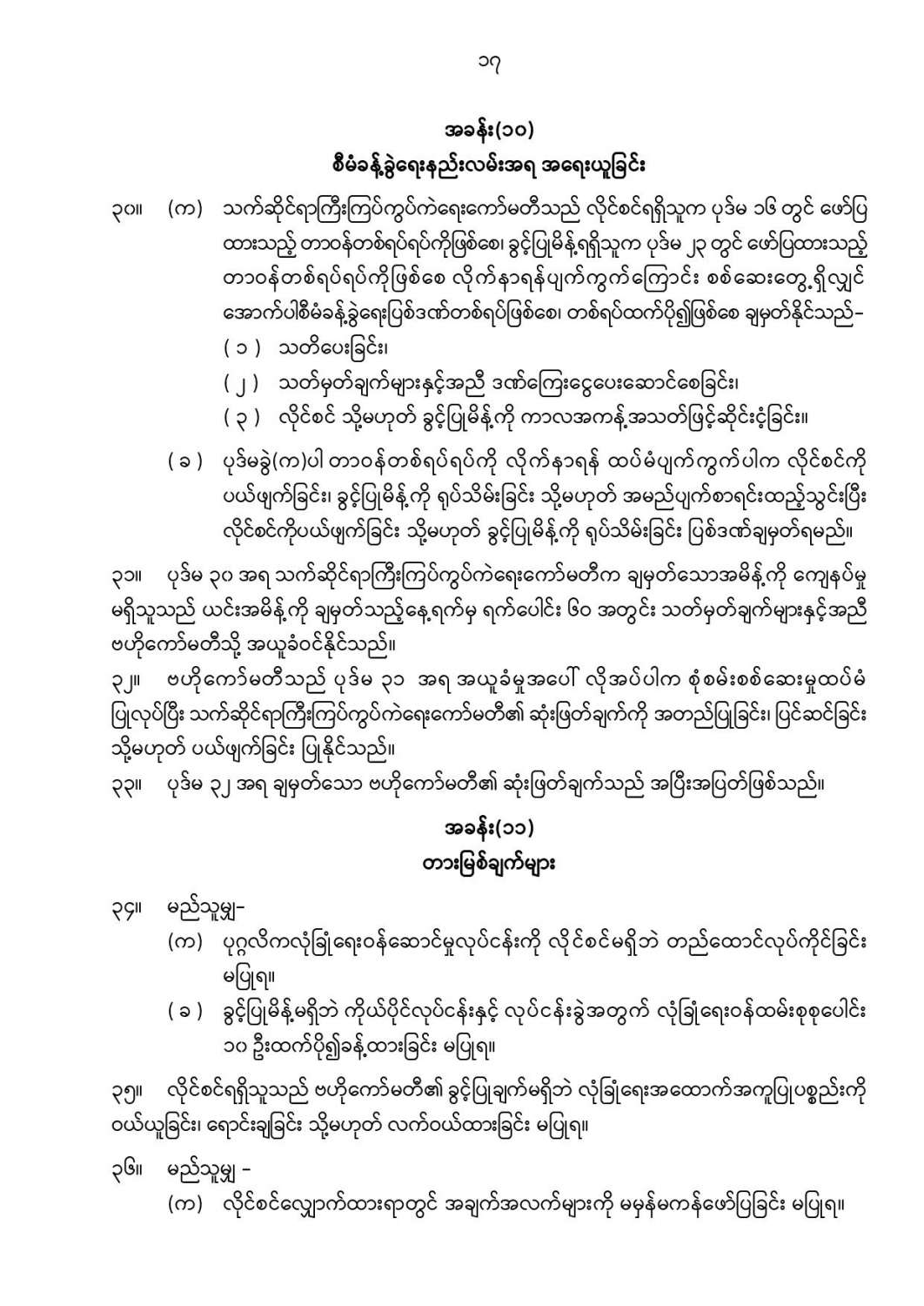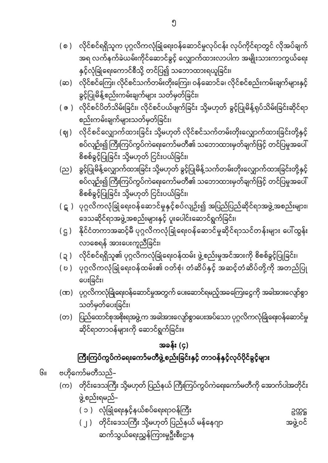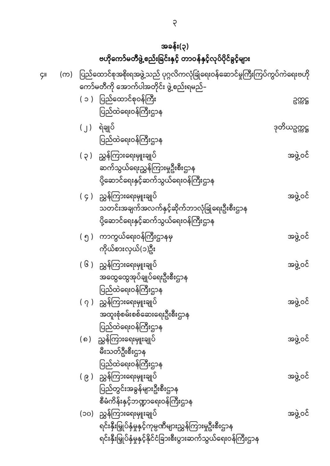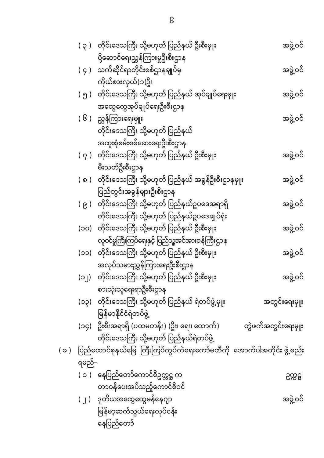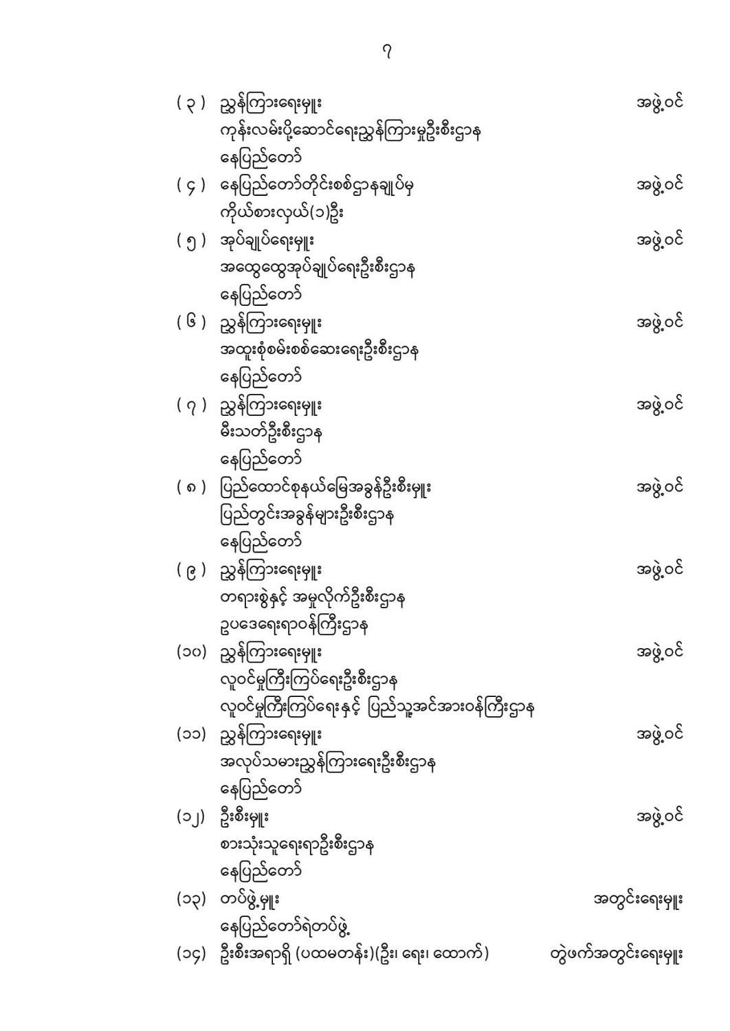 ဦးစီးဌာနနှင့် လုပ်ငန်းများ၏ ကြေညာချက်များ