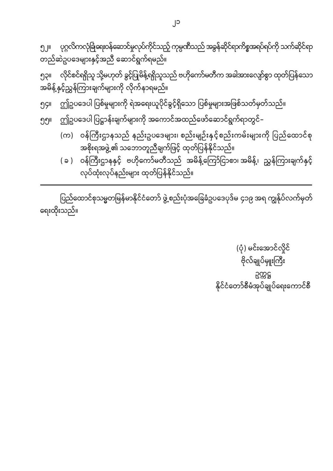 ဝန်ကြီးဌာန ကြေညာချက်များ