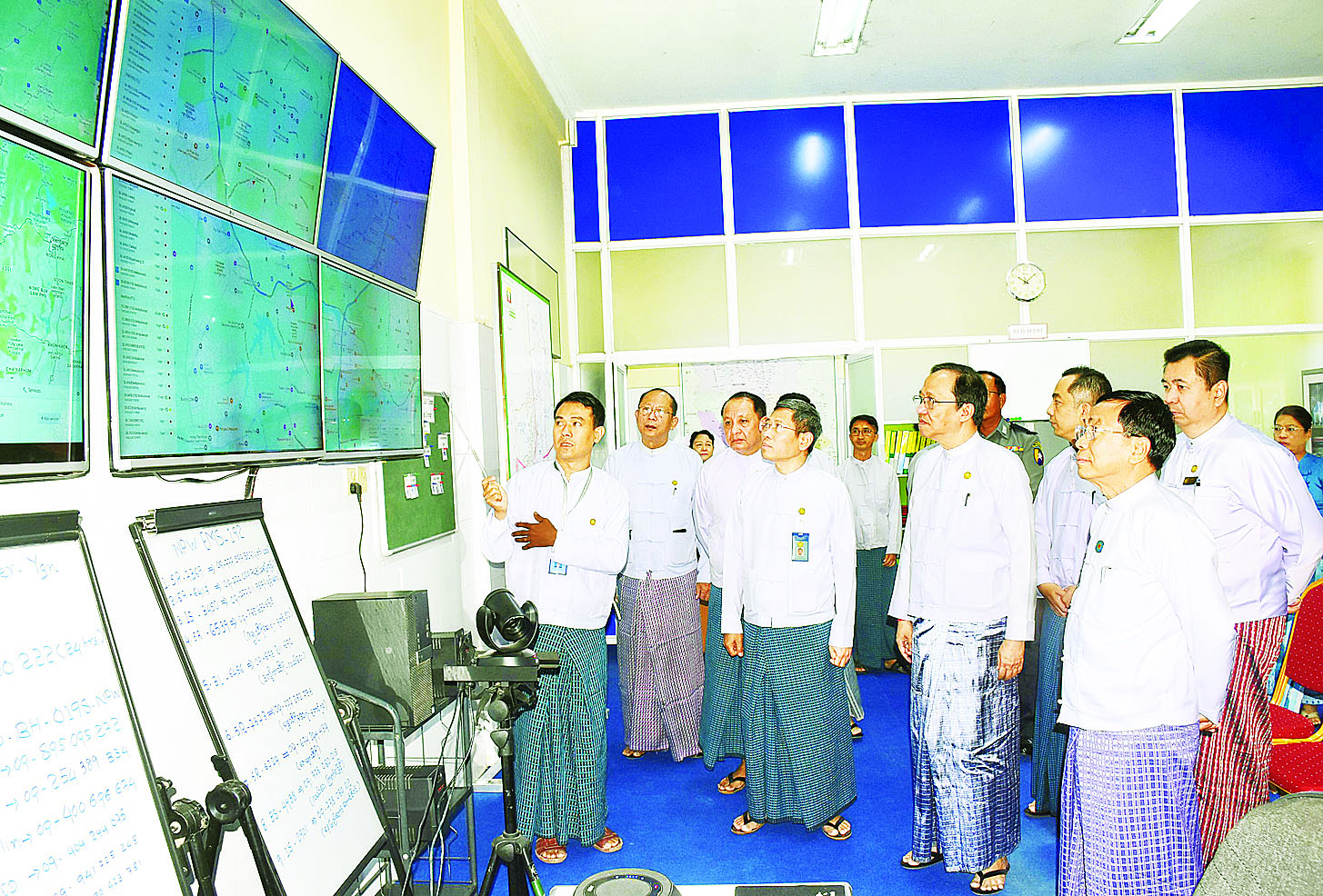 ဆက်လက်၍ ပြည်ထောင်စုဝန်ကြီး၊ နေပြည်တော်ကောင်စီဥက္ကဋ္ဌနှင့် တာဝန်ရှိသူများသည် နေပြည်တော်ပြည်သူ့ဆေးရုံကြီး (ခုတင်-၁၀၀၀) တွင် ဖွင့်လှစ်ထားရှိသည့် “EMS 192 Command and Control Center” သို့ သွားရောက်၍ လုပ်ငန်းဆောင်ရွက်မှုများကို ကြည့်ရှုပြီး လူနာတင်ယာဉ်များဖြင့် လူနာများကယ်ဆယ်ပို့ဆောင်ရေးလုပ်ငန်းသရုပ်ပြမှုများ၊ လူနာတင်ယာဉ် ပြင်ဆင်ထားရှိမှုများနှင့် Ambulances Crew စုဖွဲ့မှုများကို ကြည့်ရှုစစ်ဆေးကြသည်။