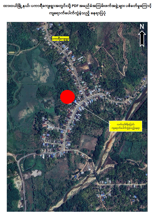 ဖြစ်စဉ်မှာ ဖေဖော်ဝါရီလ ၁၈ ရက်နေ့ ည ၈ နာရီခန့်တွင် PDF အမည်ခံ အကြမ်းဖက်သမားများက လက်လုပ်စိန်ပြောင်းဖြင့် ပကာရီကျေးရွာ၏ အရှေ့တောင်ဘက် အကြောင်းမဲ့လာရောက်ပစ်ခတ်မှုကြောင့် ကျေးရွာအနီးသို့ ကျရောက်ပေါက်ကွဲခဲ့သဖြင့် အပြစ်မဲ့အရပ်သားပြည်သူ အမျိုးသမီး ၂ ဦး ဗုံးစထိမှန်ဒဏ်ရာများ ရရှိခဲ့သည်။ အဆိုပါထိခိုက်ဒဏ်ရာရရှိသူများအား နယ်မြေခံတပ်မတော်ဆေးရုံသို့ ပို့ဆောင်၍ ဆေးကုသမှုခံယူစေလျက်ရှိကြောင်း သိရသည်။