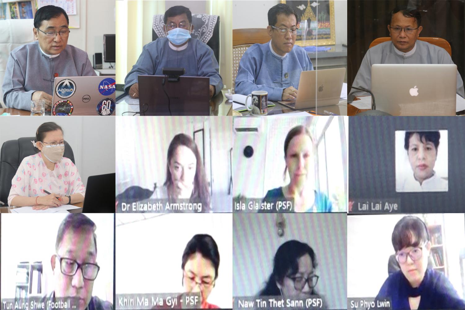 လူမှုသဟဇာတဆိုင်ရာ လုပ်ငန်းများ ဆက်လက်ဆောင်ရွက်နိုင်ရန် လူမှုသဟဇာတဆိုင်ရာ မူဘောင်တစ်ရပ် ပေါ်ပေါက်လာရေးဆွေးနွေးပွဲကို ယနေ့နံနက်ပိုင်းက လူမှုဝန်ထမ်း၊ကယ်ဆည်ရေးနှင့် ပြန်လည်နေရာ ချထားရေးဝန်ကြီးဌာန ပြည်ထောင်စုဝန်ကြီးဒေါက်တာဝင်းမြတ်အေးနှင့် ဝန်ကြီးဌာန တာဝန်ရှိသူများ၊ Paung Sie Facility နှင့် ဩစတြေးလျနိုင်ငံ Football United အဖွဲ့တို့ အွန်လိုင်းစနစ်ဖြင့် ကျင်းပပြုလုပ်သည်။