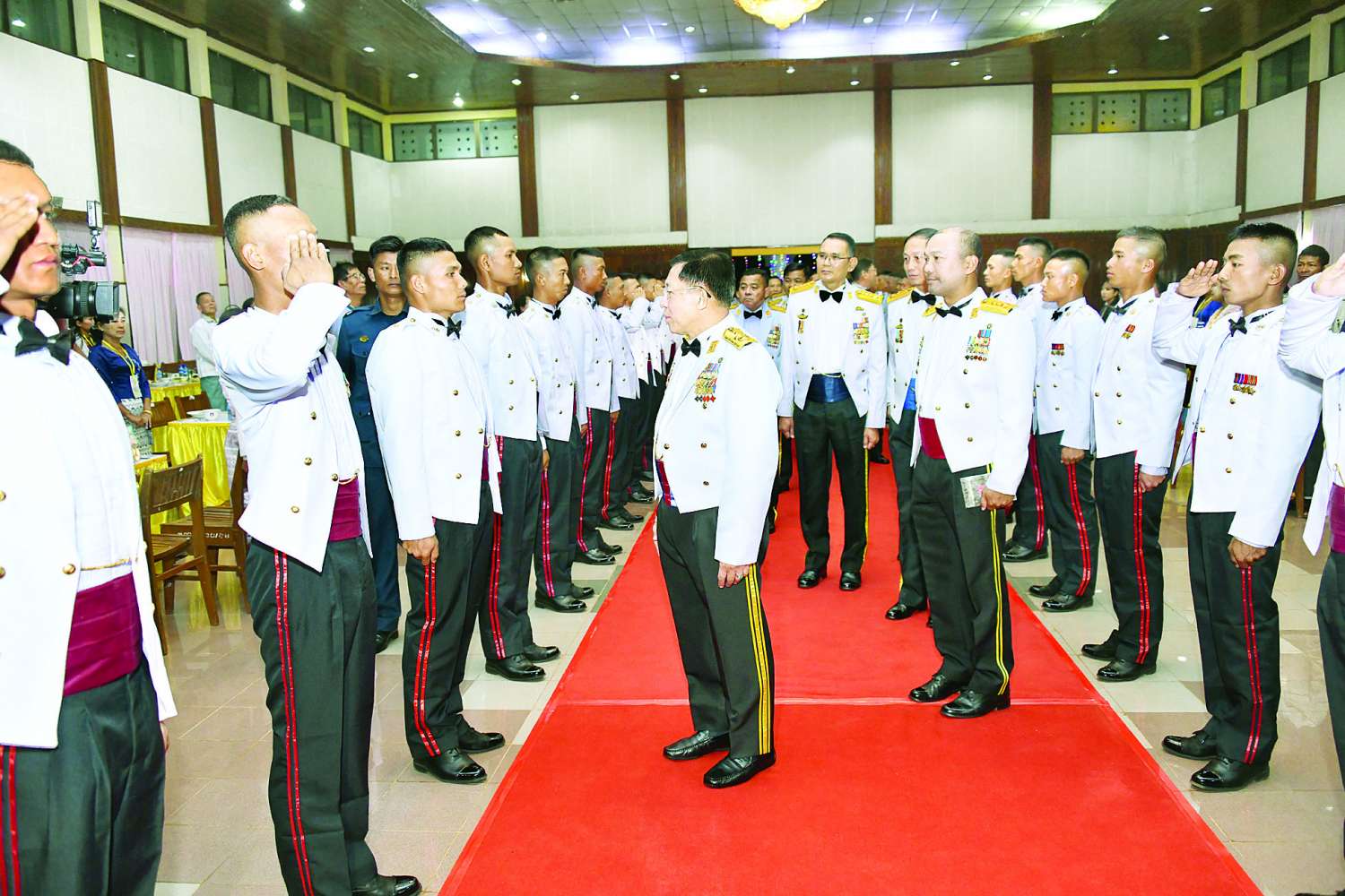ဦးစွာ နိုင်ငံတော်စီမံအုပ်ချုပ်ရေးကောင်စီဥက္ကဋ္ဌ တပ်မတော်ကာကွယ်ရေးဦးစီးချုပ်က သင်တန်းဆင်းအရာရှိများအား တစ်ဦးချင်း ရင်းရင်းနှီးနှီးလိုက်လံနှုတ်ဆက်သည်။ ထို့နောက် နိုင်ငံတော်စီမံအုပ်ချုပ်ရေးကောင်စီဥက္ကဋ္ဌ တပ်မတော်ကာကွယ်ရေးဦးစီးချုပ်နှင့် အဖွဲ့ဝင်များသည် သင်တန်းဆင်းအရာရှိများ၊ ညစာစားပွဲ တက်ရောက်လာကြသူများနှင့်အတူ ဂုဏ်ပြုညစာကို အတူတကွသုံးဆောင်ကြသည်။