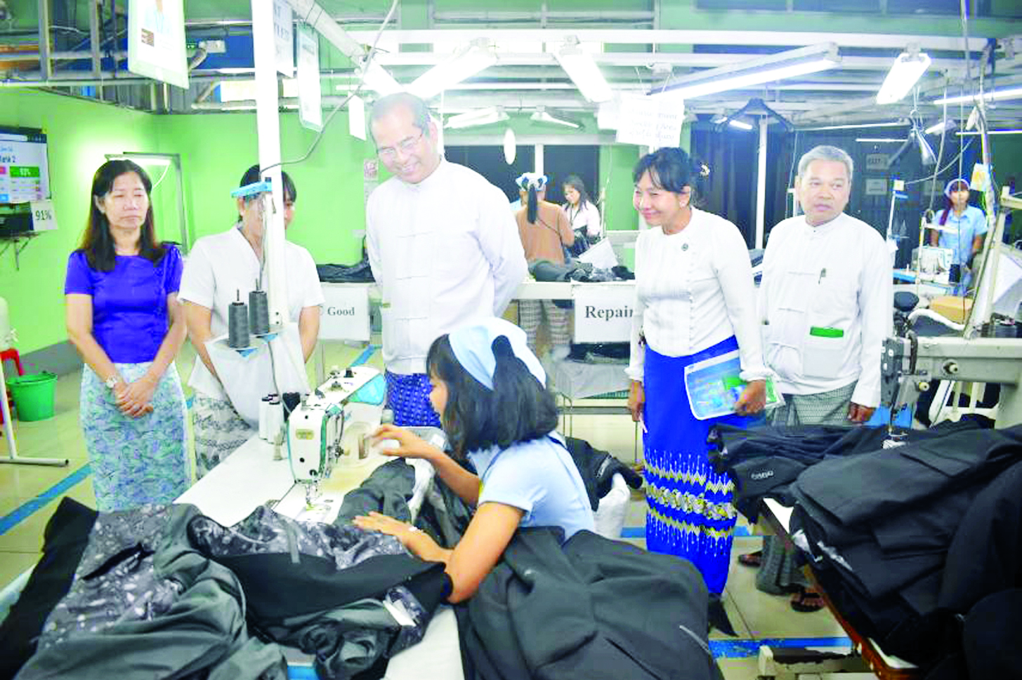 မွန်းလွဲပိုင်းတွင် ဒုတိယဝန်ကြီးနှင့်အဖွဲ့သည် မင်္ဂလာဒုံမြို့နယ်ရှိ အထည်ချုပ်စက်ရုံများ ဖြစ်သော THY Garment Co., Ltd. နှင့် Musung Garment Co., Ltd. တို့သို့သွားရောက်၍ အလုပ်ရှင်၊ အလုပ်သမားများကို တွေ့ဆုံအားပေးပြီး စက်ရုံအစည်းအဝေးခန်းမ၌ စက်ရုံတာဝန်ခံများ၊ မန်နေဂျာများ၊ ကြီးကြပ်ရေးမှူး များ၊ စက်ရုံအလုပ်သမားအဖွဲ့ အစည်းဝင်များ၊ လုပ်ငန်းခွင်ညှိနှိုင်း ရေးကော်မတီဝင်များ၊ လုပ်ငန်းခွင် ဘေးအန္တရာယ်ကင်းရှင်းရေးနှင့် ကျန်းမာရေးတာဝန်ခံများက လုပ်ငန်းခွင် အခြေအနေများကို ရှင်းလင်းတင်ပြမှုအပေါ် စက်ရုံအလုပ်သမားအဖွဲ့အစည်း၊ အလုပ်သမားရေးရာ လုပ်ငန်းညှိနှိုင်းရေး ကော်မတီ(WCC)၊ လုပ်ငန်းခွင် ဘေးအန္တရာယ် ကင်းရှင်းရေးနှင့် ကျန်းမာရေးကော်မတီများအနေဖြင့် အလုပ်သမားရေးရာ ဥပဒေများနှင့်အညီ သက်ဆိုင်ရာဌာနများ၏ စည်းကြပ်ဆောင်ရွက်ပေးမှုများကို အလေးထားလိုက်နာရန်၊ အလုပ်ရှင်နှင့် အလုပ်သမားများအနေဖြင့် ရှောင်ရန်၊ ဆောင်ရန်အချက်များကို သိရှိလိုက်နာဆောင်ရွက်ရန်မှာကြားပြီး စက်ရုံအတွင်း လှည့်လည်ကြည့်ရှုကာအလုပ်သမားများကို ရင်းရင်းနှီးနှီး တွေ့ဆုံ အားပေးစကားပြောကြားခဲ့ကြောင်း သိရသည်။