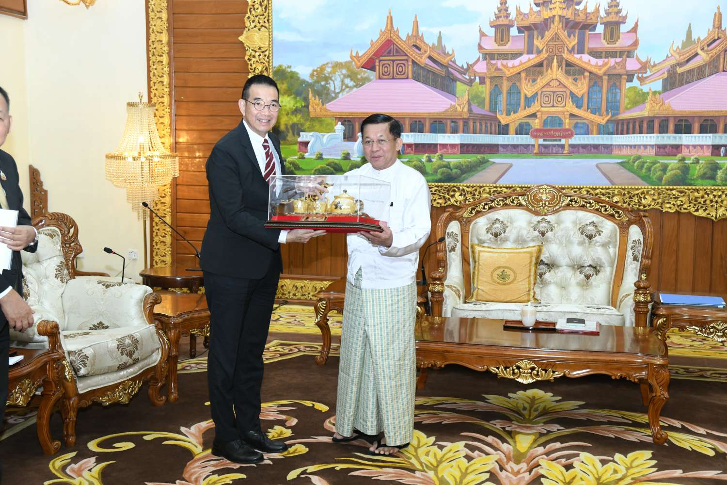 နိုင်ငံတော်စီမံအုပ်ချုပ်ရေးကောင်စီဥက္ကဋ္ဌ နိုင်ငံတော်ဝန်ကြီးချုပ် ဗိုလ်ချုပ်မှူးကြီး မင်းအောင်လှိုင်ထံသို့ ထိုင်းနိုင်ငံ၊ နိုင်ငံခြားရေးဝန်ကြီး H.E.Mr. Maris Sangiampongsa ဦးဆောင်သည့် ကိုယ်စားလှယ်အဖွဲ့က ယနေ့နံနက်ပိုင်းတွင် နေပြည်တော်ရှိ ဘုရင့်နောင်ရိပ်သာဧည့်ခန်းမဆောင်၌ လာရောက်ဂါရဝပြုတွေ့ဆုံသည်။