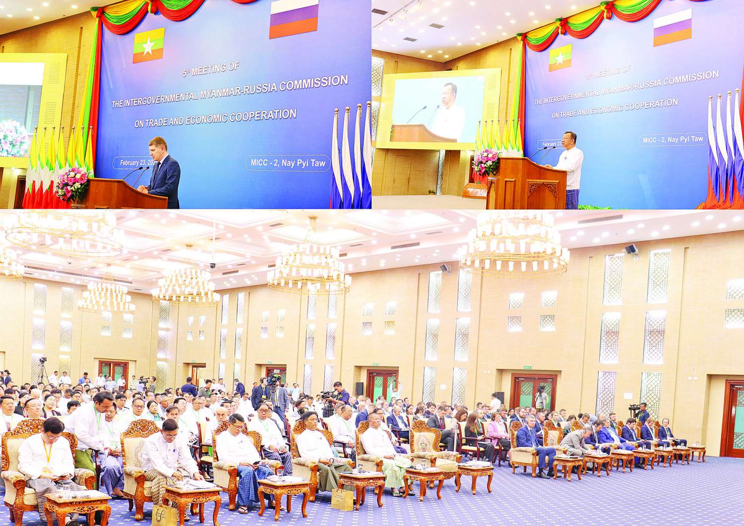 ထို့နောက် ပဉ္စမအကြိမ် မြန်မာ-ရုရှား အစိုးရအချင်းချင်း ကုန်သွယ်ရေးနှင့် စီးပွားရေးပူးပေါင်းဆောင်ရွက်ရေးကော်မရှင်အစည်းအဝေး၏ မျက်နှာစုံညီအစည်းအဝေးကို ကျင်းပရာ ကော်မရှင်၏ ပူးတွဲဥက္ကဋ္ဌများနှင့် မြန်မာနိုင်ငံဆိုင်ရာ ရုရှားဖက်ဒရေးရှင်းနိုင်ငံ သံအမတ်ကြီး မစ္စတာ အိစ်ကန်ဒဲအာဇီဇော့ဖ်တို့က အဖွင့်အမှာစကားပြောကြားသည်။