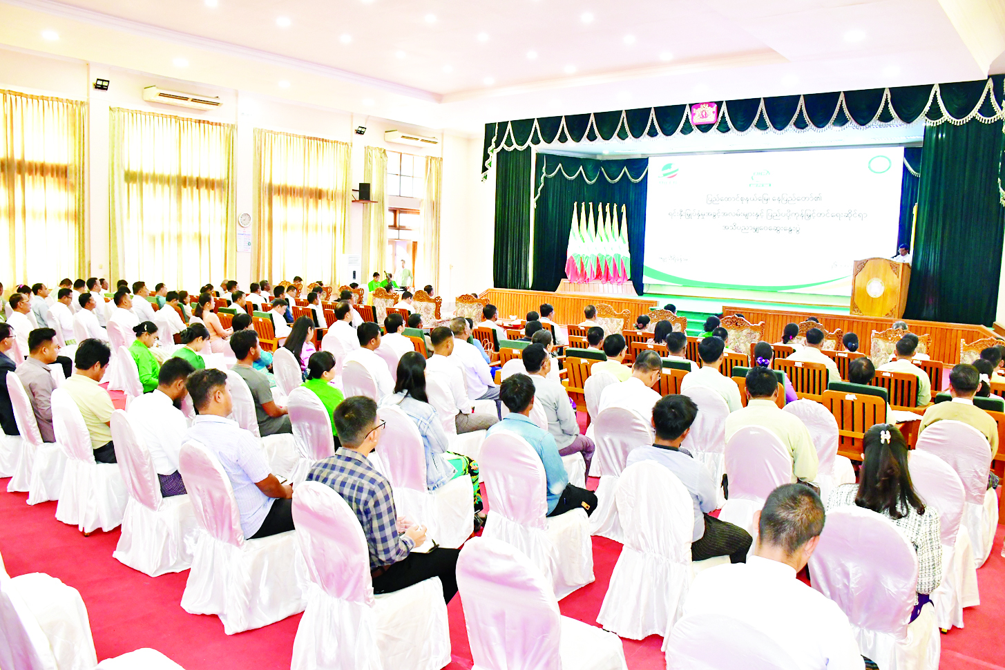 ရင်းနှီးမြှုပ်နှံမှုနှင့် နိုင်ငံခြားစီးပွား ဆက်သွယ်ရေးဝန်ကြီးဌာနနှင့် နေပြည်တော်ကောင်စီ ရင်းနှီးမြှုပ်နှံမှုကော်မတီတို့ ကြီးမှူးကျင်းပသည့် ပြည်ထောင်စုနယ်မြေ နေပြည်တော်၏ ရင်းနှီးမြှုပ်နှံမှုအခွင့်အလမ်းများနှင့် ပြည်ပပို့ကုန်မြှင့်တင်ရေးဆိုင်ရာ အသိပညာမျှဝေဆွေးနွေးပွဲကို ယနေ့နံနက်ပိုင်းတွင် နေပြည်တော်ကောင်စီရုံး ဇမ္ဗူသီရိခန်းမ၌ ကျင်းပသည်။