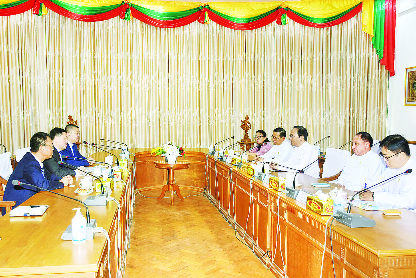 ပြည်ထောင်စုဝန်ကြီး ဒေါက်တာသက်ခိုင်ဝင်းအား တရုတ်နိုင်ငံ ပေကျင်းဟုန်ဖန်းရင်းနှီးမြှုပ်နှံမှု ကုမ္ပဏီလီမိတက်မှ Mr. Zhou Xiaofeng ဦးဆောင်သည့်ကိုယ်စားလှယ်အဖွဲ့ လာရောက်တွေ့ဆုံ