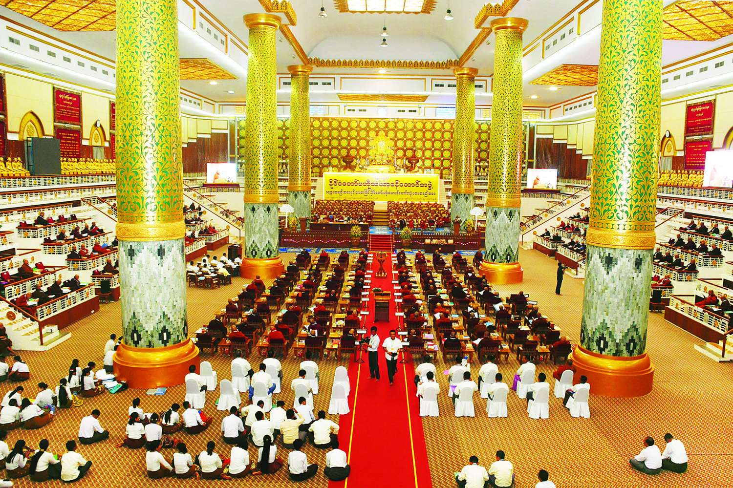 အစည်းအဝေးတွင် နိုင်ငံတော်ဗဟိုသံဃာ့ဝန်ဆောင်အဖွဲ့ဥက္ကဋ္ဌ အဂ္ဂမဟာပဏ္ဍိတ အဂ္ဂမဟာ သဒ္ဓမ္မဇောတိကဓဇ ဒေါက်တာဘဒ္ဒန္တစန္ဒိမာ ဘိဝံသက သဘာပတိဆရာတော်အဖြစ် ဆောင်ရွက်တော်မူပြီး တွဲဖက်အကျိုးတော်ဆောင်ဆရာတော် အဂ္ဂမဟာဂန္ထဝါစကပဏ္ဍိတ အဂ္ဂမဟာ သဒ္ဓမ္မဇောတိကဓဇ ဘဒ္ဒန္တပညာဓဇက အခမ်းအနားမှူးဆရာတော်အဖြစ် ဆောင်ရွက်တော်မူသည်။