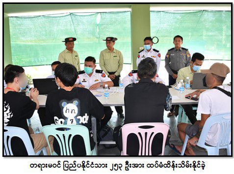 ထိုင်းနိုင်ငံအပါအဝင် အိမ်နီးချင်းနိုင်ငံအချို့ကို တစ်ဆင့်ခံဖြတ်သန်း၍ မြန်မာနိုင်ငံအတွင်းသို့ နယ်စပ်လမ်းကြောင်းများမှ တရားမဝင် ဝင်ရောက်လာပြီး ကရင်ပြည်နယ်၊ မြဝတီမြို့- ရွှေကုက္ကိုလ်နယ်မြေမှ အွန်လိုင်းလောင်းကစားမှုများ၊ အွန်လိုင်းလိမ်လည်မှုများ၊ ဒုစရိုက်မှုများ ကျူးလွန်ခဲ့ကြသူများကို စစ်ဆေးဖော်ထုတ်လျက်ရှိရာ ယနေ့တွင် ပြည်ပနိုင်ငံသား ၂၅၃ ဦးကို ထပ်မံစစ်ဆေးဖော်ထုတ်ထိန်းသိမ်းနိုင်ခဲ့သည်။