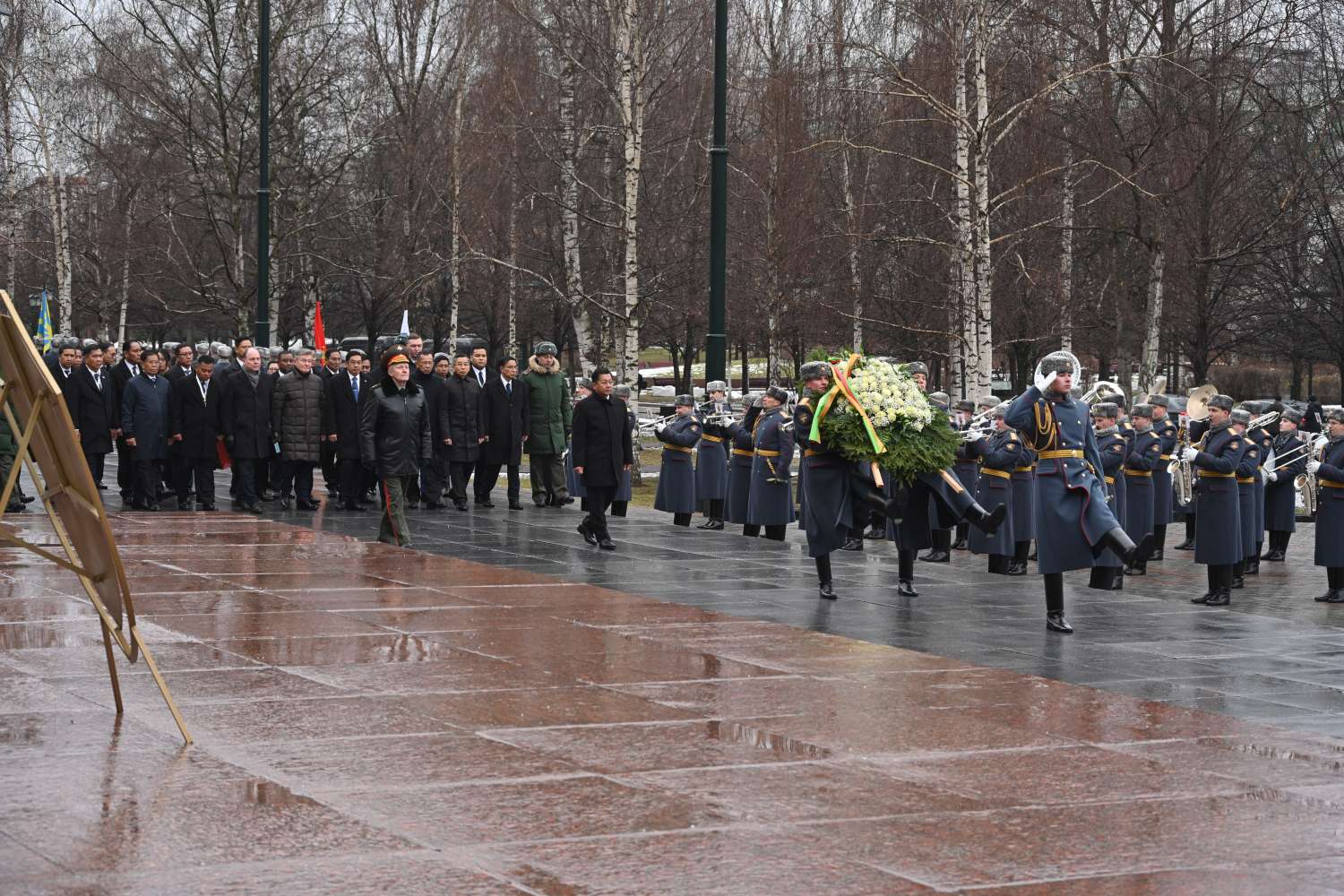 ယင်းနောက် ရှေ့ဆောင်စစ်သည်နှစ်ဦးမှဦးဆောင်၍ လွမ်းသူပန်းခွေအားသယ်ဆောင်ပြီး နိုင်ငံတော်စီမံအုပ်ချုပ်ရေးကောင်စီဥက္ကဋ္ဌ နိုင်ငံတော်ဝန်ကြီးချုပ်က အညတရစစ်သည်ဂူဗိမာန်၌ လွမ်းသူပန်းခွေချအလေးပြုသည်။ လွမ်းသူပန်းခွေချအလေးပြုစဉ်အချိန်၌ ရုရှားဖက်ဒရေးရှင်းနိုင်ငံ ဂုဏ်ပြုတပ်ဖွဲ့က ပြည်ထောင်စုသမ္မတမြန်မာနိုင်ငံတော် နိုင်ငံတော်သီချင်းအား တီးမှုတ်ကြသည်။