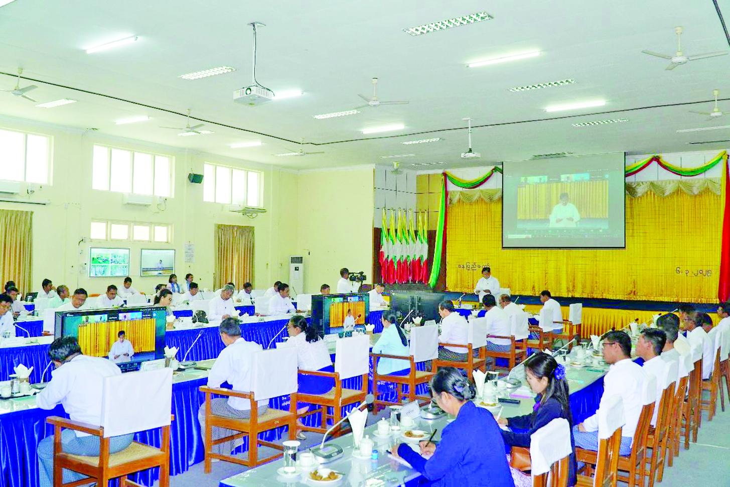 အစည်းအဝေးသို့ အသေးစား၊ အငယ်စားနှင့် အလတ်စားစီးပွားရေးလုပ်ငန်းများ ဖွံ့ဖြိုးတိုးတက်ရေးလုပ်ငန်းကော်မတီ ဒုတိယဥက္ကဋ္ဌ စက်မှုဝန်ကြီးဌာန ပြည်ထောင်စုဝန်ကြီး ဒေါက်တာချာလီသန်း၊ ဒုတိယဝန်ကြီး ဦးရင်မောင်ညွန့်နှင့် တာဝန်ရှိသူများ၊ တိုင်းဒေသကြီးနှင့် ပြည်နယ်များမှ ပြည်တွင်းသံထည်ထုတ်ကုန်ပစ္စည်းများ ထုတ်လုပ်ရောင်းချသူများ တက်ရောက်ကြသည်။