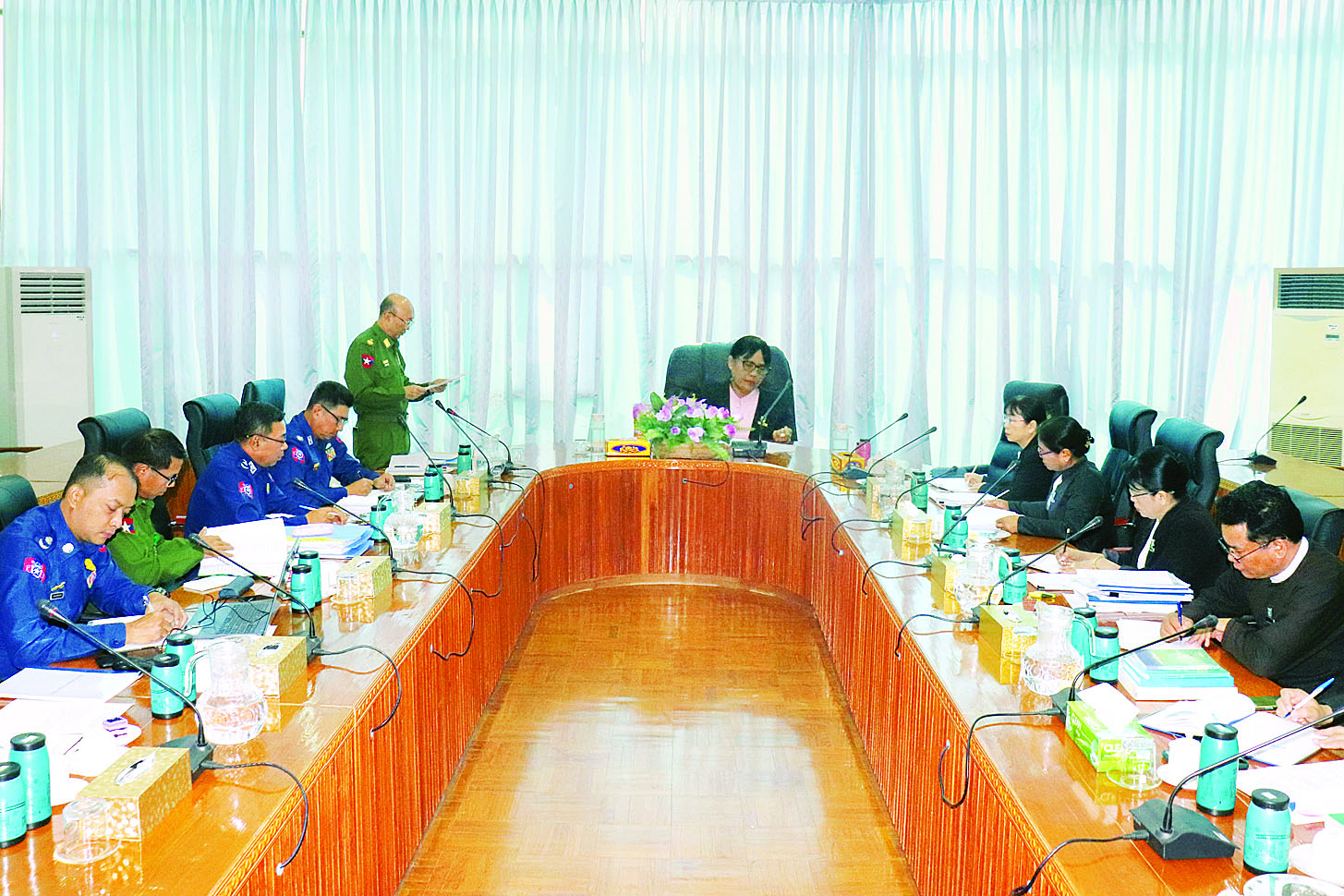 အစည်းအဝေးသို့ ဥပဒေရေးရာဝန်ကြီးဌာန ပြည်ထောင်စုဝန်ကြီးနှင့် ပြည်ထောင်စုရှေ့နေချုပ် ဒေါက်တာသီတာဦး၊ ကာကွယ်ရေးဝန်ကြီးဌာန ဒုတိယဝန်ကြီး ဗိုလ်ချုပ်ကိုလေး၊ ကမ်းခြေစောင့်တပ်ဖွဲ့ ညွှန်ကြားရေးမှူးချုပ်နှင့် တာဝန်ရှိသူများ၊ ဥပဒေမူကြမ်းစိစစ်ရေးဦးစီးဌာနမှ ညွှန်ကြားရေးမှူးချုပ်နှင့် တာဝန်ရှိသူများ တက်ရောက်ကြသည်။