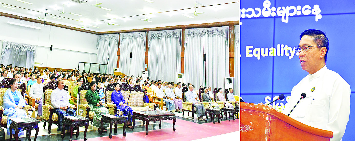 ဦးစွာ ပြည်ထောင်စုဝန်ကြီး ဒေါက်တာစိုးဝင်းက ၂၀၂၅ ခုနှစ်တွင် ကမ္ဘာပေါ်ရှိ လူဦးရေသန်း ရှစ်ထောင်ကျော်ရှိသည့်အနက် ကမ္ဘာ့အမျိုးသမီးသည် သန်းလေးထောင်ကျော် ၄၉ ဒသမ ၇၃ ရာခိုင် နှုန်းရှိကြောင်း၊ ယခင်နှစ်စာရင်းများအရ ကမ္ဘာတစ်ဝန်း လက်နက်ကိုင်ပဋိပက္ခများအကြားတွင် အမျိုးသမီးနှင့် မိန်းကလေးငယ် ၆၁၂ သန်း ရင်ဆိုင်ကြုံတွေ့ခဲ့ကြရကြောင်း၊ အမျိုးသမီးများအား နည်းမျိုးစုံဖြင့် ခွဲခြားမှုပပျောက်ရေးဆိုင်ရာ ကုလသမဂ္ဂကွန်ဗင်းရှင်း (UN-CEDAW) နှင့်အညီ အမျိုးသမီးများ၏ နိုင်ငံရေး၊ စီးပွားရေး၊ လူမှုရေးနှင့် ယဉ်ကျေးမှုဆိုင်ရာ နယ်ပယ်အားလုံးတွင် အမျိုးသမီးများ၏ပါဝင်မှုကို တိုးမြှင့်ဆောင်ရွက်ပေးရန် လိုအပ်ကြောင်း၊ အမျိုးသမီးများ ဖွံ့ဖြိုးတိုးတက်ရေးကို ဆောင်ရွက်လျက်ရှိသကဲ့သို့ အမျိုးသမီးများအပေါ် အကြမ်းဖက်မှုများကိုလည်း လျော့နည်းပပျောက်သွားအောင် အသိပညာပေးခြင်း၊ ကူညီစောင့်ရှောက်ခြင်းများကိုလည်း ဆောင်ရွက်ပေးရန်လိုကြောင်း။