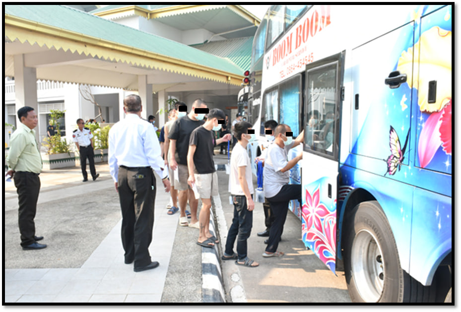 မြန်မာ - တရုတ် - ထိုင်း သုံးနိုင်ငံအကြား သုံးပွင့်ဆိုင်ပူးပေါင်းဆောင်ရွက်မှုပုံစံ (Trilateral Cooperation) ဖြင့် အွန်လိုင်းအသုံးပြုလိမ်လည်မှု (Online Scam) နှင့် အွန်လိုင်းလောင်းကစားမှု (Online Gambling) လုပ်ဆောင်နေကြသူများ၊ ပါဝင်ပတ်သက်သူများနှင့် နောက်ကွယ်မှ ကြိုးကိုင်သော ပြည်ပနိုင်ငံသားများကို ပြတ်ပြတ်သားသား စုံစမ်းဖော်ထုတ်ဖမ်းဆီးထိန်းသိမ်းလျက်ရှိရာ ကရင်ပြည်နယ်၊ မြဝတီမြို့ - ရွှေကုက္ကိုလ်၊ မယ်ထော်သလေးနှင့် KK Park နယ်မြေများတွင် အွန်လိုင်းလောင်းကစားမှုများ၊ အွန်လိုင်းလိမ်လည်မှုများ ကျူးလွန်ခဲ့ကြသည့် ပြည်ပနိုင်ငံသား ၂၁၄ ဦးကို ယနေ့တွင် သက်ဆိုင်ရာနိုင်ငံသို့ လွှဲပြောင်းပေးအပ်ခဲ့ပြီး ပြည်ပနိုင်ငံသား ၁၄၀ ကို ထပ်မံစစ်ဆေးဖော်ထုတ်ထိန်းသိမ်းနိုင်ခဲ့သည်။