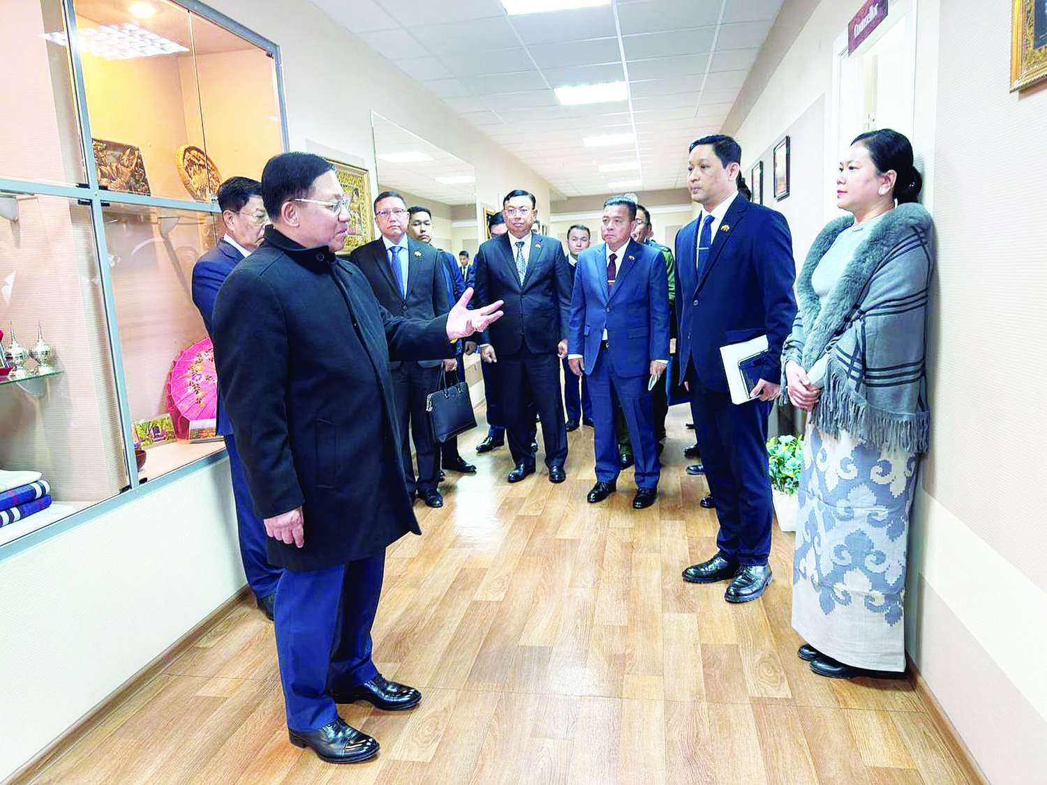 ၎င်းနောက် နိုင်ငံတော်စီမံအုပ်ချုပ်ရေးကောင်စီဥက္ကဋ္ဌ နိုင်ငံတော်ဝန်ကြီးချုပ်သည် ကောင်စစ်ဝန်ချုပ်ရုံး ဝန်ထမ်းမိသားစုများနှင့် နိုဗိုစီဗစ်မြို့တွင် သင်တန်းတက်ရောက်လျက်ရှိသည့် သင်တန်းသားအရာရှိများအားတွေ့ဆုံ၍ မြန်မာနိုင်ငံနှင့် နိုဗိုစီဗစ်မြို့အကြား ချစ်ကြည်ရင်းနှီးမှုနှင့် ပူးပေါင်းဆောင်ရွက်မှုများ တိုးတက်အောင် ဆောင်ရွက်ရန် လိုအပ်မှု၊ ကုန်သွယ်မှုများတိုးတက်စေရေး ဝိုင်းဝန်းကြိုးပမ်းဆောင်ရွက်ပေးကြစေလိုမှု၊ နိုဗိုစီဗစ်မြို့ရှိ တက္ကသိုလ်များ၌ ပညာတော်သင်များ ပညာသင်ကြားနိုင်ရေးအတွက် ထပ်မံစေလွှတ်ပေးသွားရန် စီစဉ်ဆောင်ရွက်လျက်ရှိမှုများနှင့် ကောင်စစ်ဝန်ချုပ်ရုံး ဝန်ထမ်းမိသားစုများနှင့် သင်တန်းသားအရာရှိများ၏ လိုအပ်ချက်များကို မေးမြန်းပြီး ဖြည့်ဆည်းဆောင်ရွက်ပေးသည်။