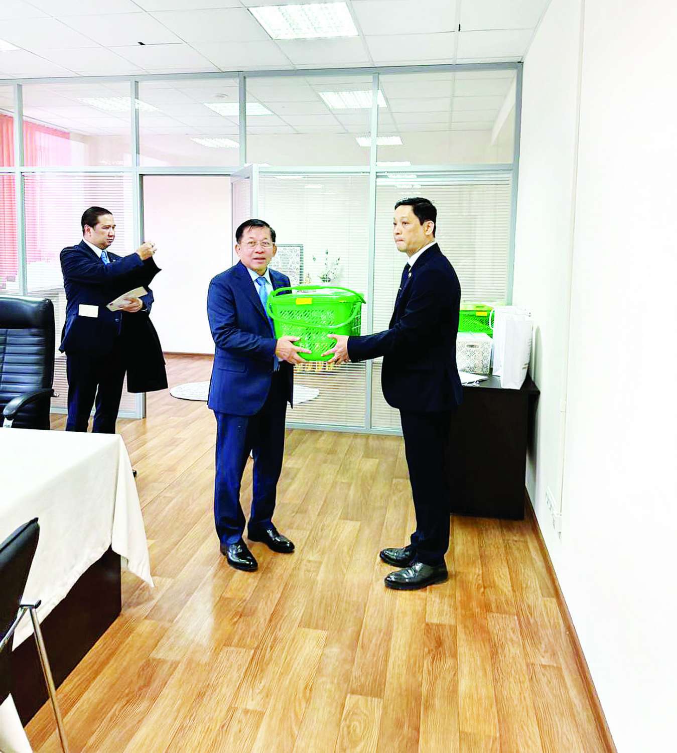 ၎င်းနောက် နိုင်ငံတော်စီမံအုပ်ချုပ်ရေးကောင်စီဥက္ကဋ္ဌ နိုင်ငံတော်ဝန်ကြီးချုပ်နှင့် နိုဗိုစီဗစ်ဒေသအကြီးအကဲတို့အား ဒုတိယဝန်ကြီးချုပ်နှင့် နိုင်ငံခြားရေးဝန်ကြီးဌာန ပြည်ထောင်စုဝန်ကြီးက မြန်မာကောင်စစ်ဝန်ချုပ်ရုံးဖွင့်ပွဲအထိမ်းအမှတ်လက်ဆောင်များကို ဂါရဝပြုပေးအပ်သည်။