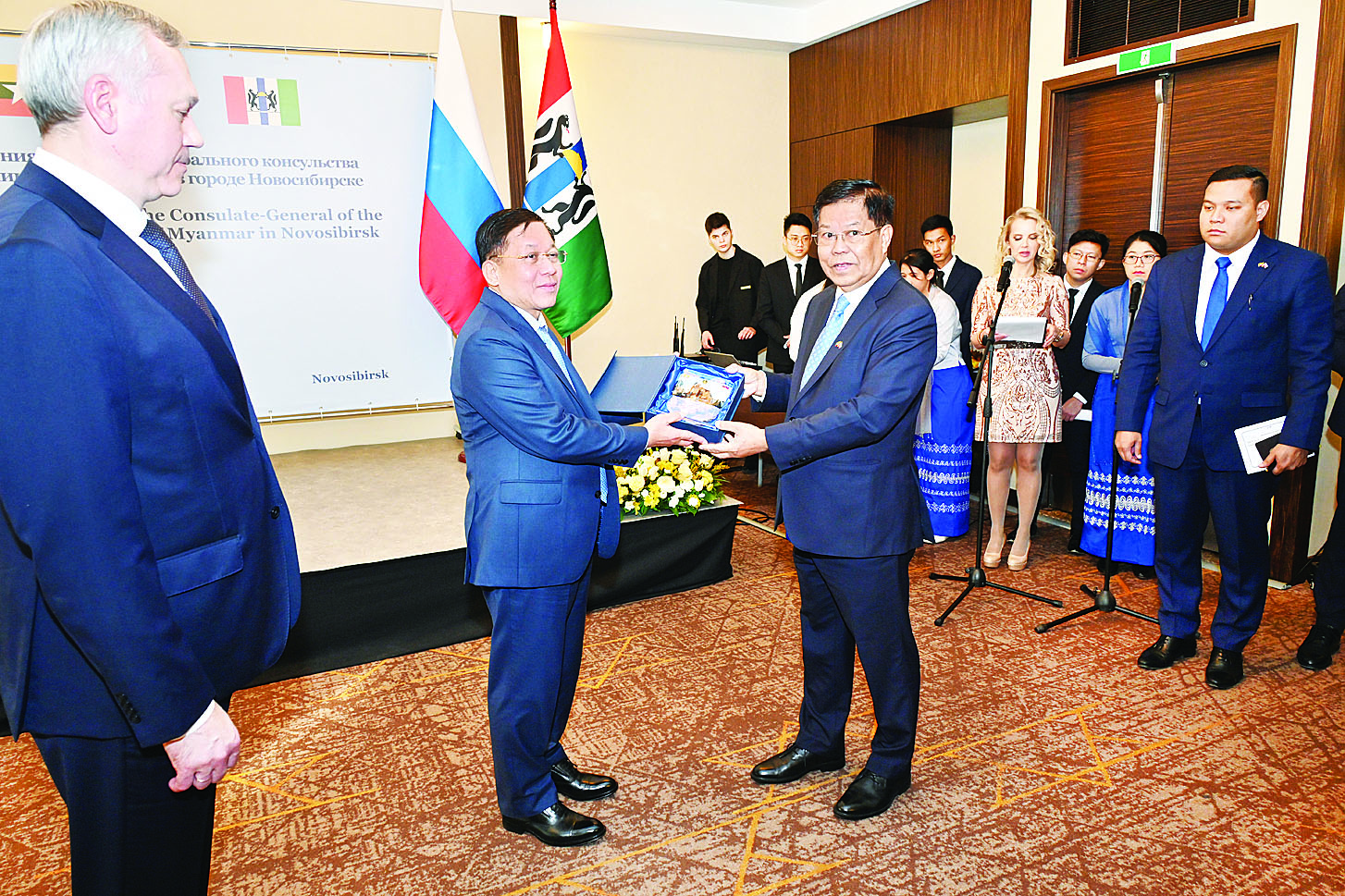 ရုရှားဖက်ဒရေးရှင်းနိုင်ငံ နိုဗိုစီဗစ်မြို့၊ ကောင်စစ်ဝန်ချုပ်ရုံးဖွင့်ပွဲအခမ်းအနားကို ယနေ့ဒေသစံတော်ချိန် နံနက်ပိုင်းတွင် Grand Autograph ဟိုတယ်၌ ကျင်းပပြုလုပ်ရာ ရုရှားနိုင်ငံသို့ တရားဝင်ချစ်ကြည်ရေးခရီး ရောက်ရှိနေသည့် နိုင်ငံတော်စီမံအုပ်ချုပ်ရေးကောင်စီဥက္ကဋ္ဌ နိုင်ငံတော်ဝန်ကြီးချုပ် ဗိုလ်ချုပ်မှူးကြီး မင်းအောင်လှိုင် တက်ရောက်ဖွင့်လှစ်ပေးသည်။
