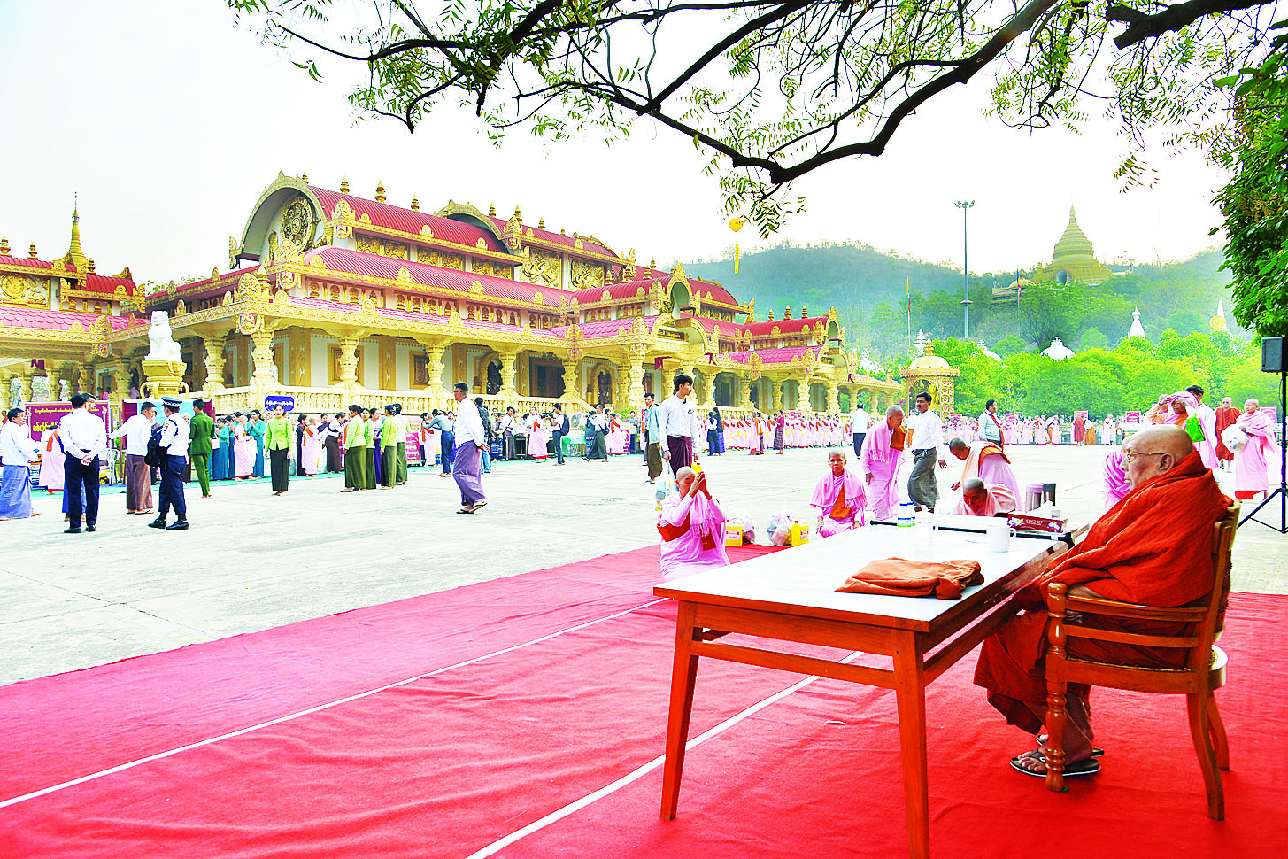ဦးစွာ စစ်ကိုင်းတောင်ရိုးတွင် ဝိပဿနာတရားများ ပွားများအားထုတ်လျက်ရှိကြသည့် သာသနာ့နွယ်ဝင်သီလရှင် ဆရာကြီးဆရာလေးများက ကျောင်းတိုက်များအလိုက် စနစ်တကျစီတန်း၍ အလှူခံကြွကြရာ စစ်ကိုင်းတိုင်းဒေသကြီး အစိုးရအဖွဲ့မှ တာဝန်ရှိသူများ၊ စစ်ကိုင်းမြို့ရှိ ဌာနဆိုင်ရာ များ၊ ပြည်တွင်း/ပြည်ပမှ စေတနာရှင်အလှူရှင်များနှင့် ဖိတ်ကြားထားသူများ တက်ရောက်လောင်းလှူကြသည်။ ထို့နောက် သီတဂူဆရာတော် ဒေါက်တာအရှင်ဉာဏိဿရနှင့် အလှူခံကြွရောက်လာကြသည့် ဆရာကြီးဆရာလေးများက ကောင်းမှုကုသိုလ်များအတွက် မေတ္တာပို့အမျှပေးဝေကြသည်။