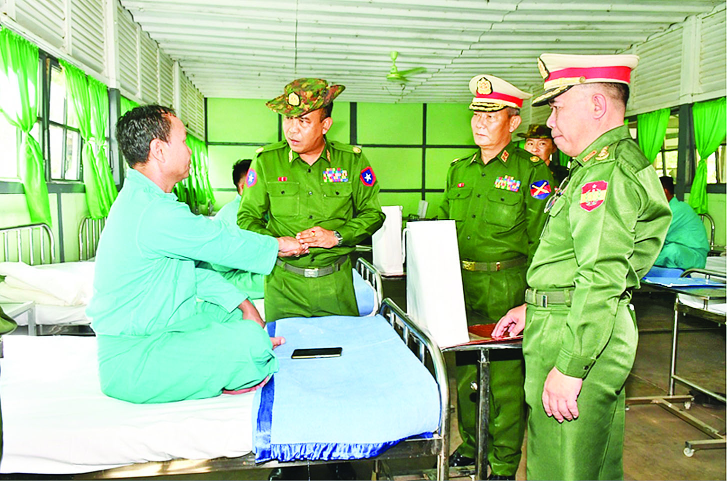 မန္တလေးတိုင်းဒေသကြီး မိတ္ထီလာမြို့ရှိ တပ်မတော်ဆေးရုံ၌ တက်ရောက်ကုသမှုခံယူလျက်ရှိသော အရာရှိ၊ စစ်သည်၊ မိသားစုများနှင့် ဒေသခံပြည်သူများကို ယနေ့တွင် အလယ်ပိုင်းတိုင်း စစ်ဌာနချုပ်တိုင်းမှူးဗိုလ်မှူးချုပ် ကျော်ကိုထိုက်နှင့် တာဝန်ရှိသူများက သွားရောက်ကြည့်ရှု၍ တစ်ဦးချင်း၏ ရောဂါဖြစ်ပွားမှု၊ ဆေးဝါးကုသပေးထားမှုနှင့် ကျန်းမာရေးတိုးတက်ကောင်းမွန် မှုအခြေအနေများကို မေးမြန်းအားပေးစကားပြောကြားပြီး အာဟာရဖြည့် စားသောက်ဖွယ်ရာများ ပေးအပ်သည်။