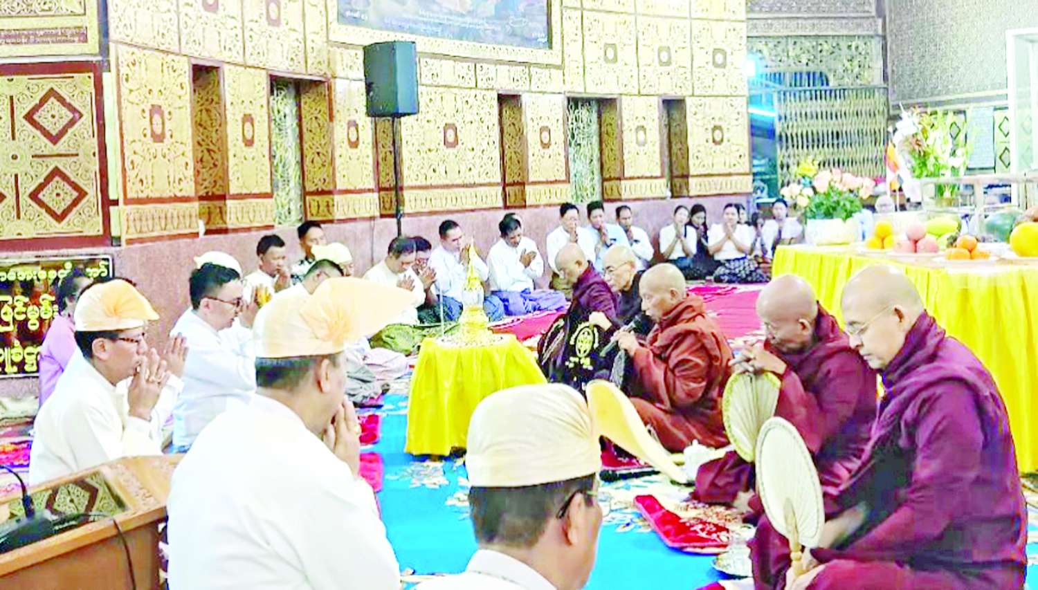 ဦးစွာ ဆရာတော်ကြီးများက ဗုဒ္ဓမြတ်စွာဘုရား၏ လက်ဝဲအောက်စွယ်တော်ပွားအား ဗုဒ္ဓါဘိသေကအနေကဇာတင်ပူဇော်ကြပြီး နိုင်ငံတော်သံဃမဟာနာယကအဖွဲ့ ဒုတိယဥက္ကဋ္ဌ ဆရာတော်ထံမှ ပရိသတ်များက ငါးပါးသီလခံယူဆောက်တည်ကြကာ ဆရာတော်များရွတ်ပွားချီးမြှင့်သည့် အန္တရာယ်ကင်းပရိတ်တရားတော်များကို နာယူကြည်ညိုကြသည်။