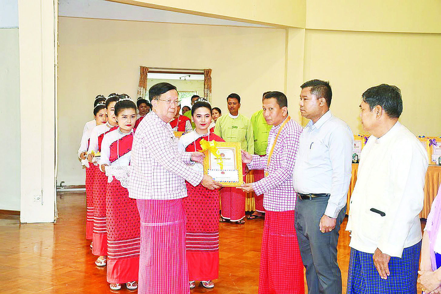ထို့နောက် နိုင်ငံတော်စီမံအုပ်ချုပ်ရေးကောင်စီအတွင်းရေးမှူး ဗိုလ်ချုပ်ကြီး အောင်လင်းဒွေးနှင့် ကောင်စီအဖွဲ့ဝင်များက ပြည်နယ်ဂုဏ်ထူးဆောင် ထူးချွန်ဆုများဖြစ်ကြသည့် စီးပွားရေးထူးချွန်မှု ဂုဏ်ထူးဆောင်ဆု၊ စိုက်ပျိုးရေးထူးချွန်မှု ဂုဏ်ထူးဆောင်ဆု၊ မွေးမြူရေးထူးချွန်မှုဂုဏ်ထူးဆောင်ဆု၊ စက်မှုလက်မှုထူးချွန်မှုဂုဏ်ထူးဆောင်ဆု၊ စီမံခန့်ခွဲရေးထူးချွန်မှုဂုဏ်ထူးဆောင်ဆု၊ ဝန်ဆောင်မှုထူးချွန်မှုဂုဏ်ထူးဆောင်ဆုနှင့် လူမှုရေးထူးချွန်မှုဂုဏ်ထူးဆောင်ဆုရရှိသူများကို ဆုများပေးအပ်ချီးမြှင့်ပြီး ဆုရရှိသူများနှင့်အတူ မှတ်တမ်းတင်ဓာတ်ပုံရိုက်ကြသည်။