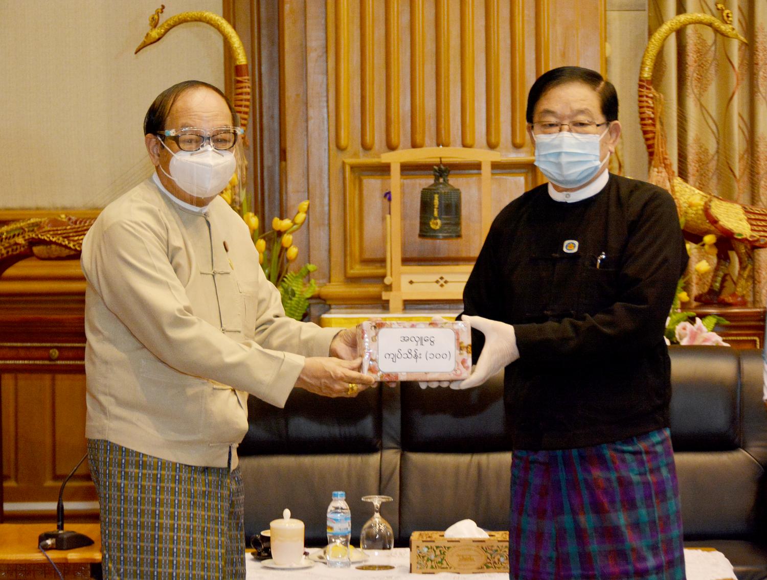 ပြည်သူ့လွှတ်တော်ဥက္ကဋ္ဌ ဦးတီခွန်မြတ်  Coronavirus Disease 2019 (Covid-19) ကာကွယ်၊ ထိန်းချုပ်၊ ကုသရေး အမျိုးသားအဆင့် ဗဟိုကော်မတီသို့ အလှူငွေများ ပေးအပ်လှူဒါန်း