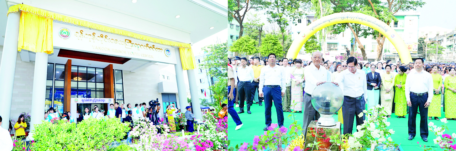 ဦးစွာ ဒုတိယဝန်ကြီး၊ တိုင်းဒေသကြီးလူမှုရေးရာဝန်ကြီးနှင့် လူငယ်များက လူငယ်စင်တာကို ဖဲကြိုးဖြတ်ဖွင့်လှစ်ကြသည်။