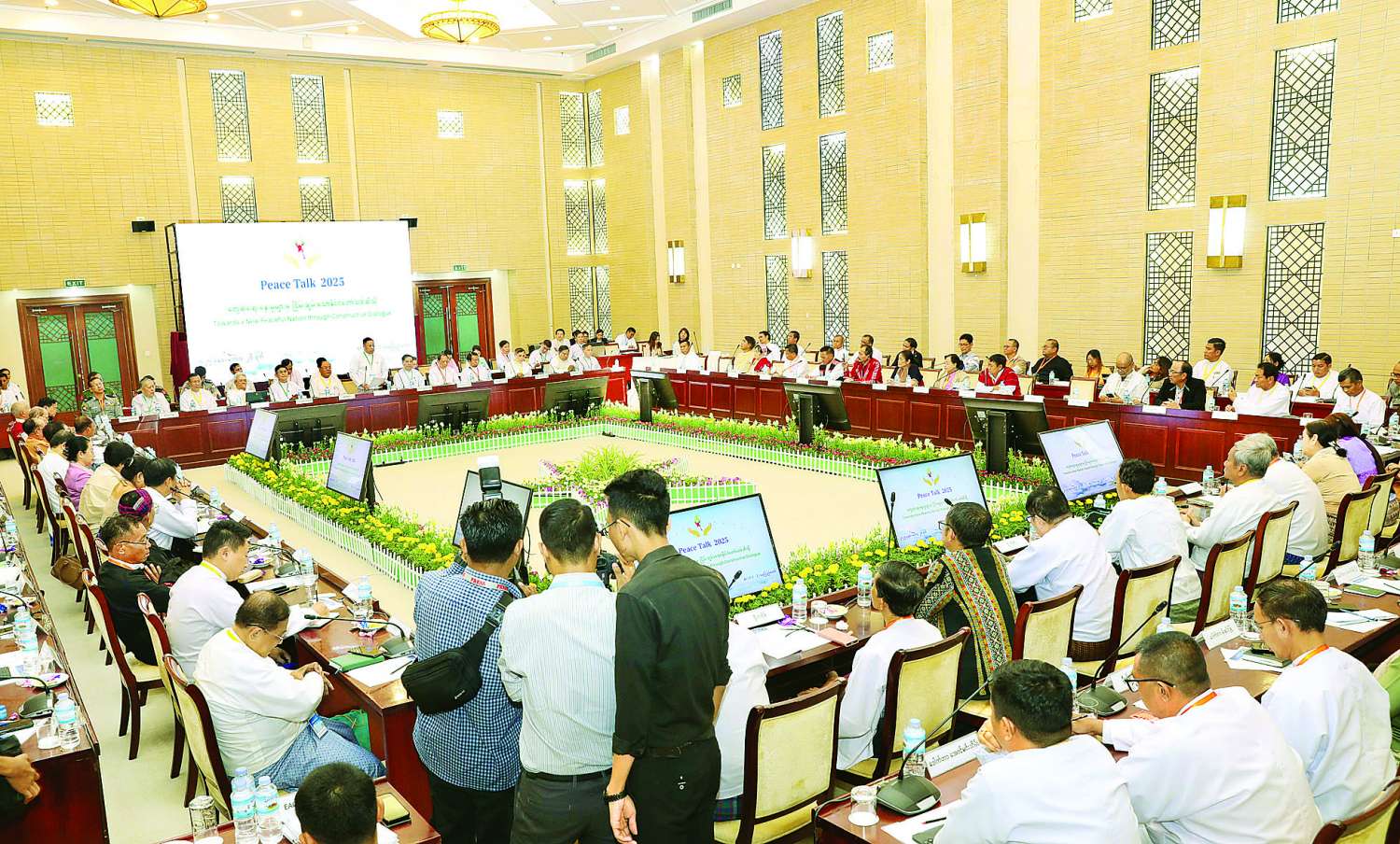 “တွေ့ဆုံဆွေးနွေးမှုများမှ ငြိမ်းချမ်းသော နိုင်ငံတော်သစ်ဆီသို့” ဆောင်ပုဒ်ဖြင့် ငြိမ်းချမ်းရေးစကားဝိုင်း - Peace Talk 2025 တတိယနေ့ကို ယနေ့နံနက်ပိုင်းတွင် နေပြည်တော်ရှိ အမျိုးသားစည်းလုံးညီညွတ်ရေးနှင့် ငြိမ်းချမ်းရေးဖော်ဆောင်မှုဗဟိုဌာန၌ ဆက်လက်ကျင်းပသည်။