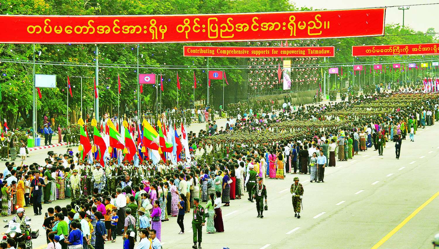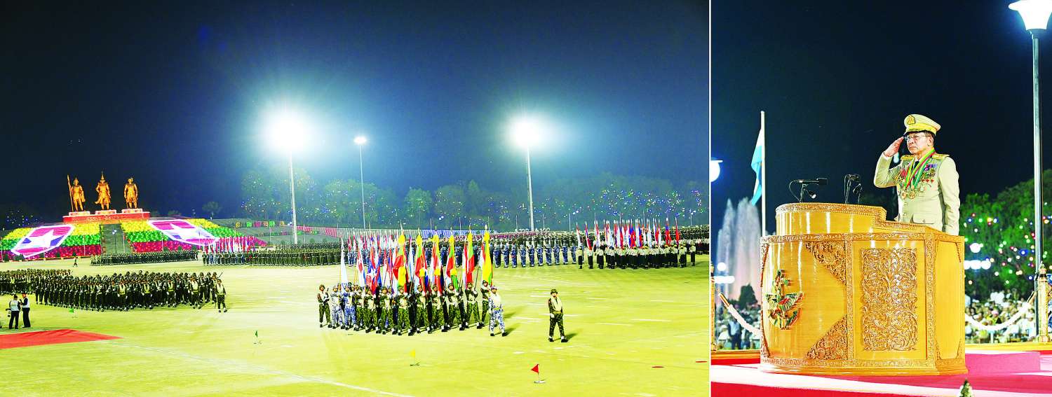 ၂၀၂၅ ခုနှစ်၊ မတ်လ ၂၇ ရက်နေ့၊ ယနေ့တွင် ကျရောက်သည့် နှစ်(၈၀)ပြည့် တပ်မတော်နေ့ စစ်ရေးပြအခမ်းအနားကို ယနေ့ညပိုင်းတွင် နေပြည်တော်စစ်ရေးပြကွင်း၌ ကျင်းပပြုလုပ်ရာ နိုင်ငံတော်စီမံအုပ်ချုပ်ရေးကောင်စီဥက္ကဋ္ဌ တပ်မတော်ကာကွယ်ရေးဦးစီးချုပ် ဗိုလ်ချုပ်မှူးကြီး သတိုးမဟာသရေစည်သူ သတိုးသီရိသုဓမ္မ မင်းအောင်လှိုင် တက်ရောက်မိန့်ခွန်းပြောကြားသည်။